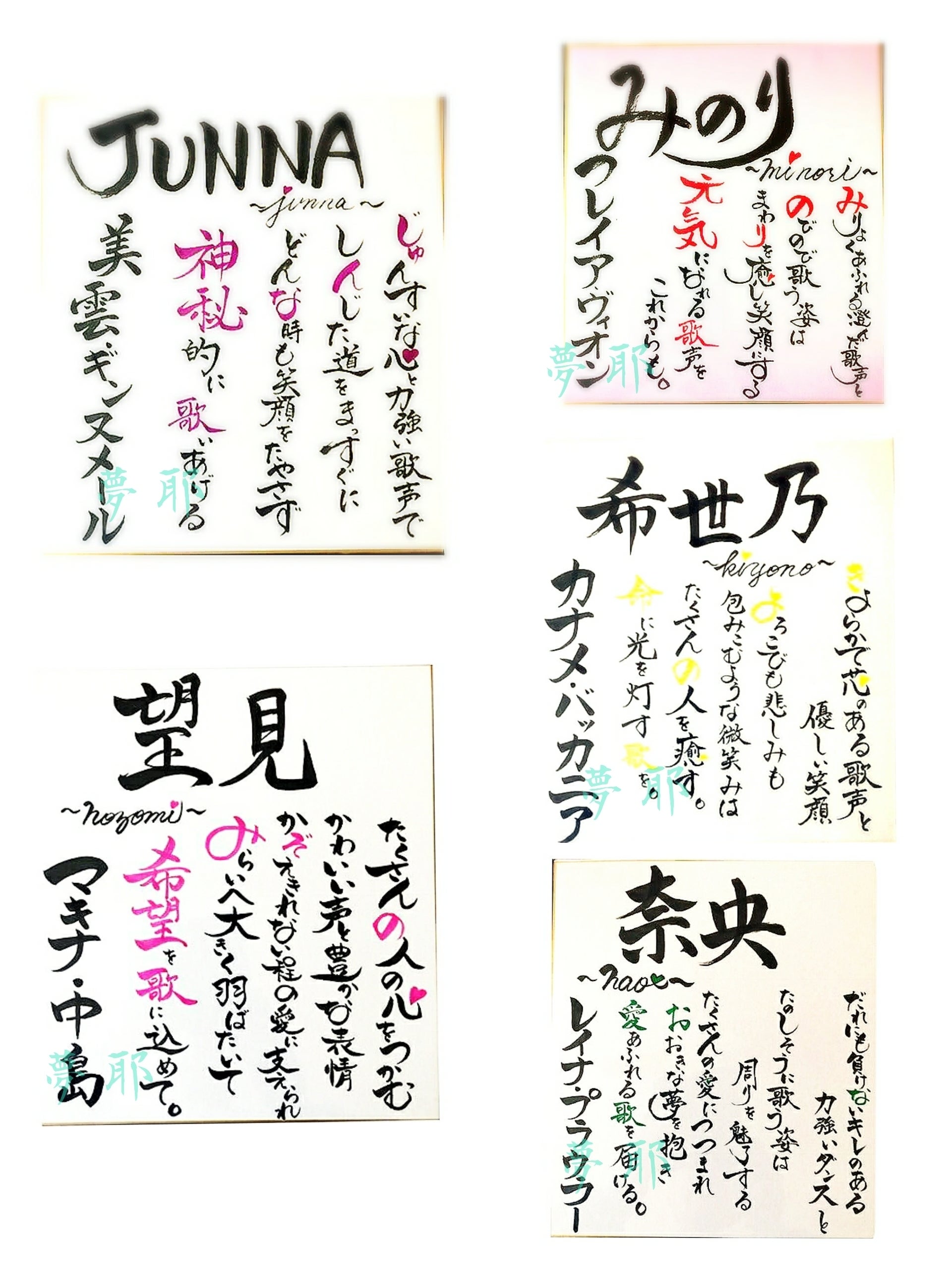 などの贈り物にお名前ポエムを書かせていただきました。