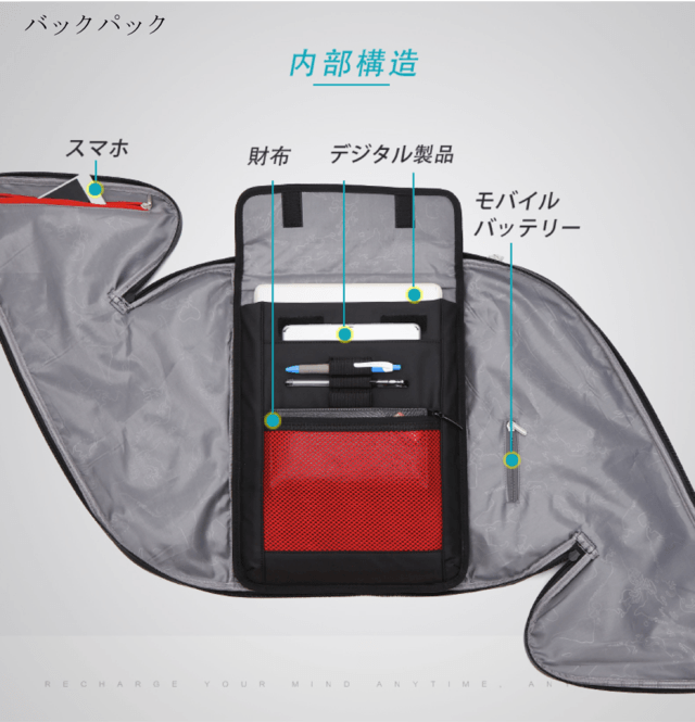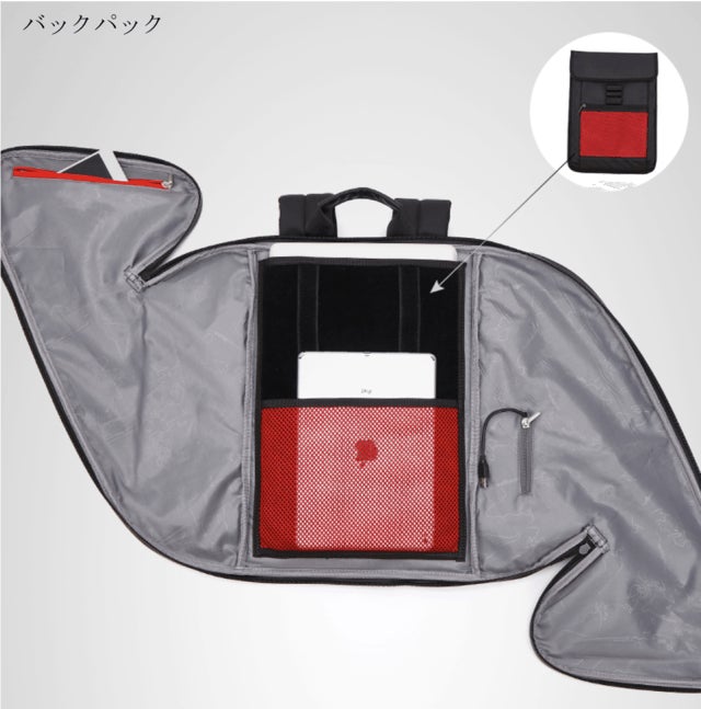 ③ほぼA3サイズで、11個の機能をもつ多機能バックパック