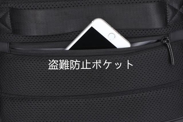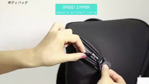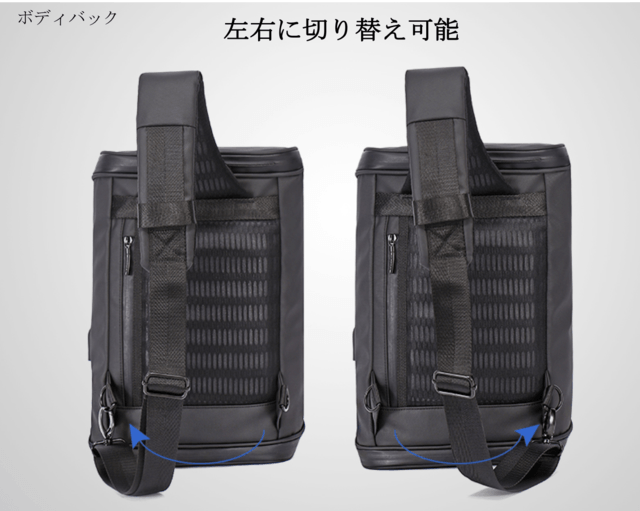 ①1ジッパー 180°全開MacBook Airがすっぽり入るボディバッグと超多機能バックパック