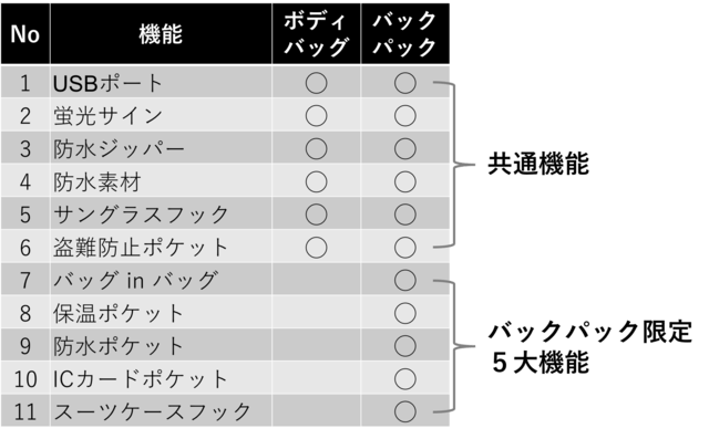 ※ボディバッグは弊社OEM製品、バックパックはTUGUAN社製品です。