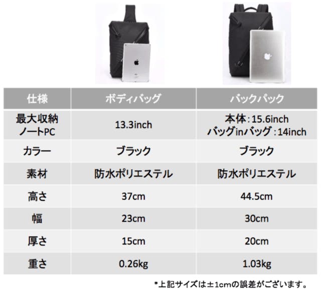 MacBook Airがピッタリ入るボディバッグと多機能バックパック
