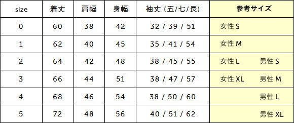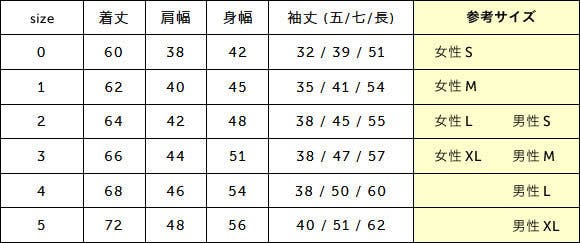 サイズはユニセックスサイズ size 0 - size 5の「6サイズ展開」。
