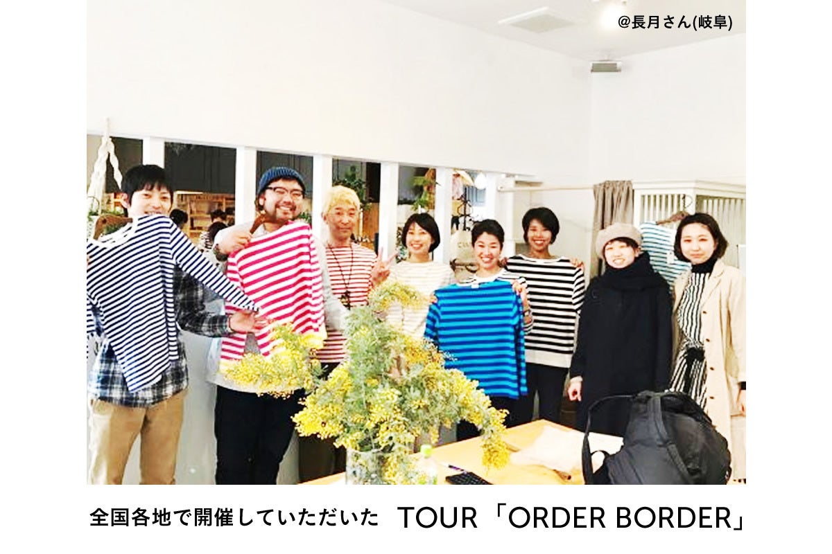 これまで多くの方からのオーダーを頂き、1万着以上のボーダーシャツを日本、そして世界へお届けしてきました。オンラインだけではなく「TOUR」と称した受注会を全国様々な場所で開催して頂き、直接お客様とお話しながら、一緒にボーダーを選びながら、一着一着大切に制作をしてきました。