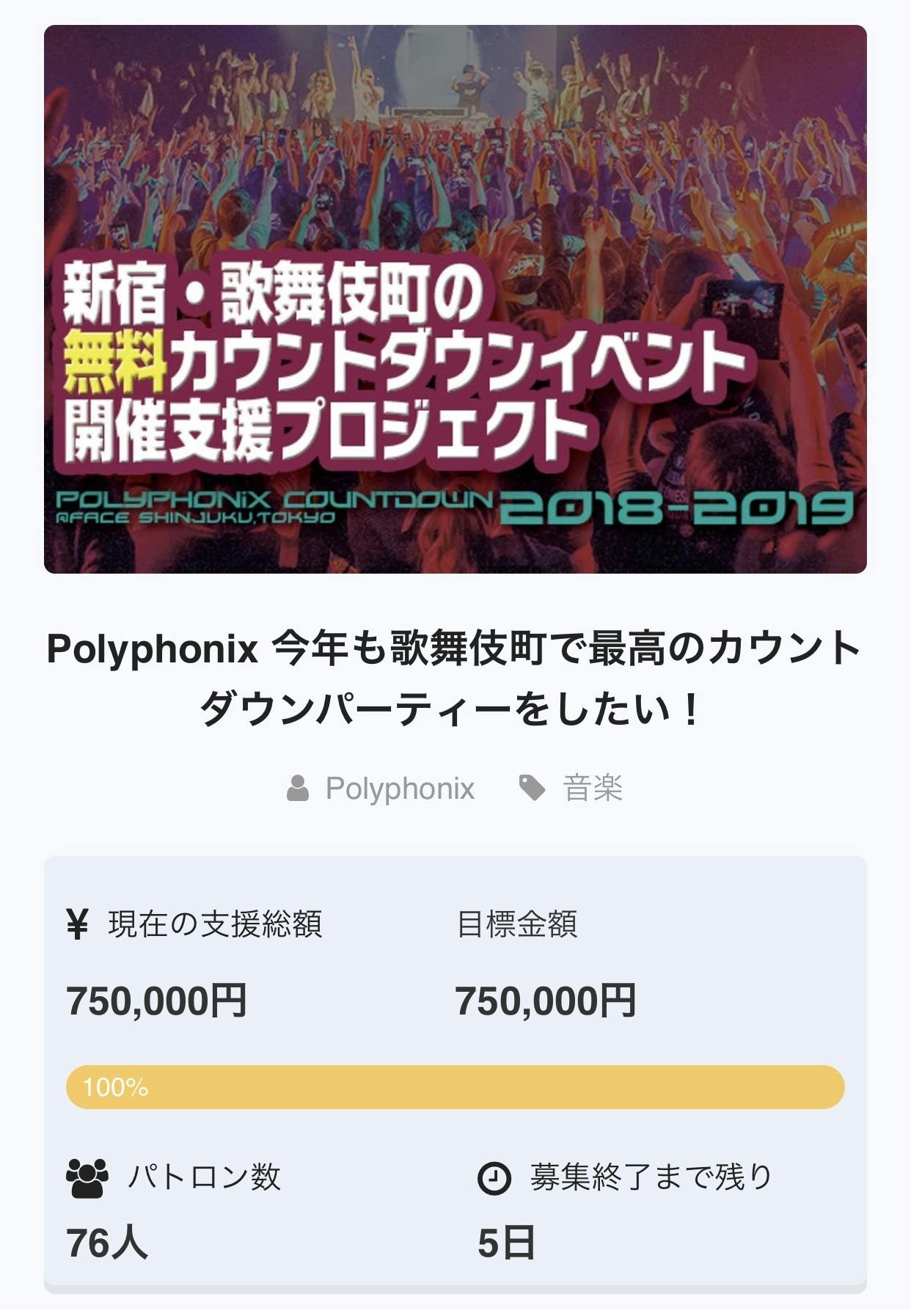 2016年、2017年と二年連続で開催したカウントダウンイベント、「Polyphonix Countdown」はCAMPFIREのプラットフォームを使わせていただきクラウドファンディングという形で資金を集め、大盛況で開催を終えることができました。