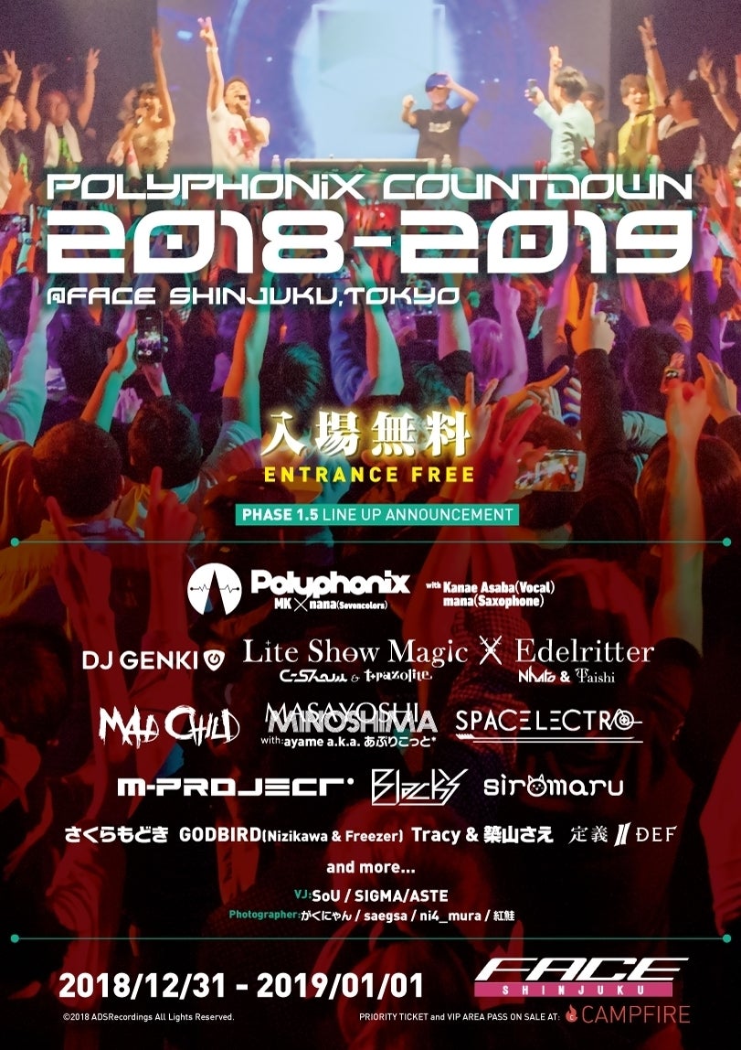 2016年、2017年と開催した「Polyphonix Countdown」が今年も開催決定!新宿・歌舞伎町のド真ん中で、最高のカウントダウンイベントを今年も入場無料で開催したい!最高のイベントにするために、皆さんの力を貸してください!