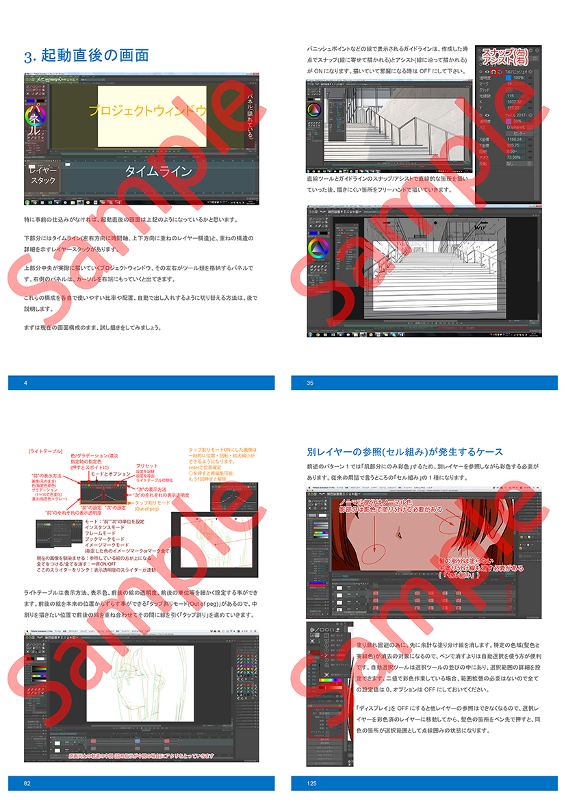 私共のスタジオでは、2015年頃からフランス製2Dアニメーションソフト「TVPaint Animation」を導入し、現在では実際のカット制作にも使われていますが、本ソフトウェアを解説している書籍は開発元が提供するドキュメント以外にほぼなく、日本のアニメ制作フローに沿う解説書が必要であったため、前職で撮影の実務経験があり動画・仕上に関しても手順をひと通り学んでいる私の方で、社内向けマニュアルを作成、加筆を進めてきました。