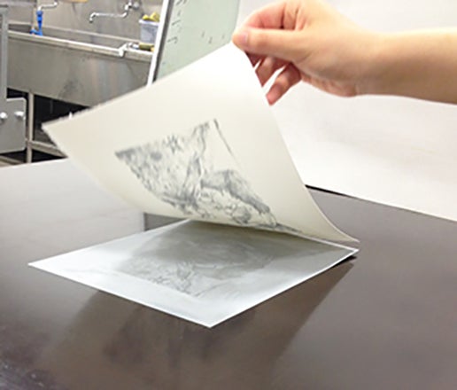 ゆっくりと版から紙を持ち上げます。