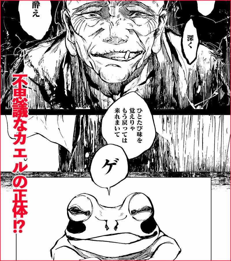 毎日誰にも売れない絵を描き、酒に酔い潰れる生活を繰り返し、 さらに奇妙な蛙が住み着くようになる。