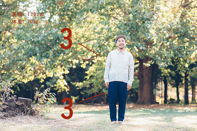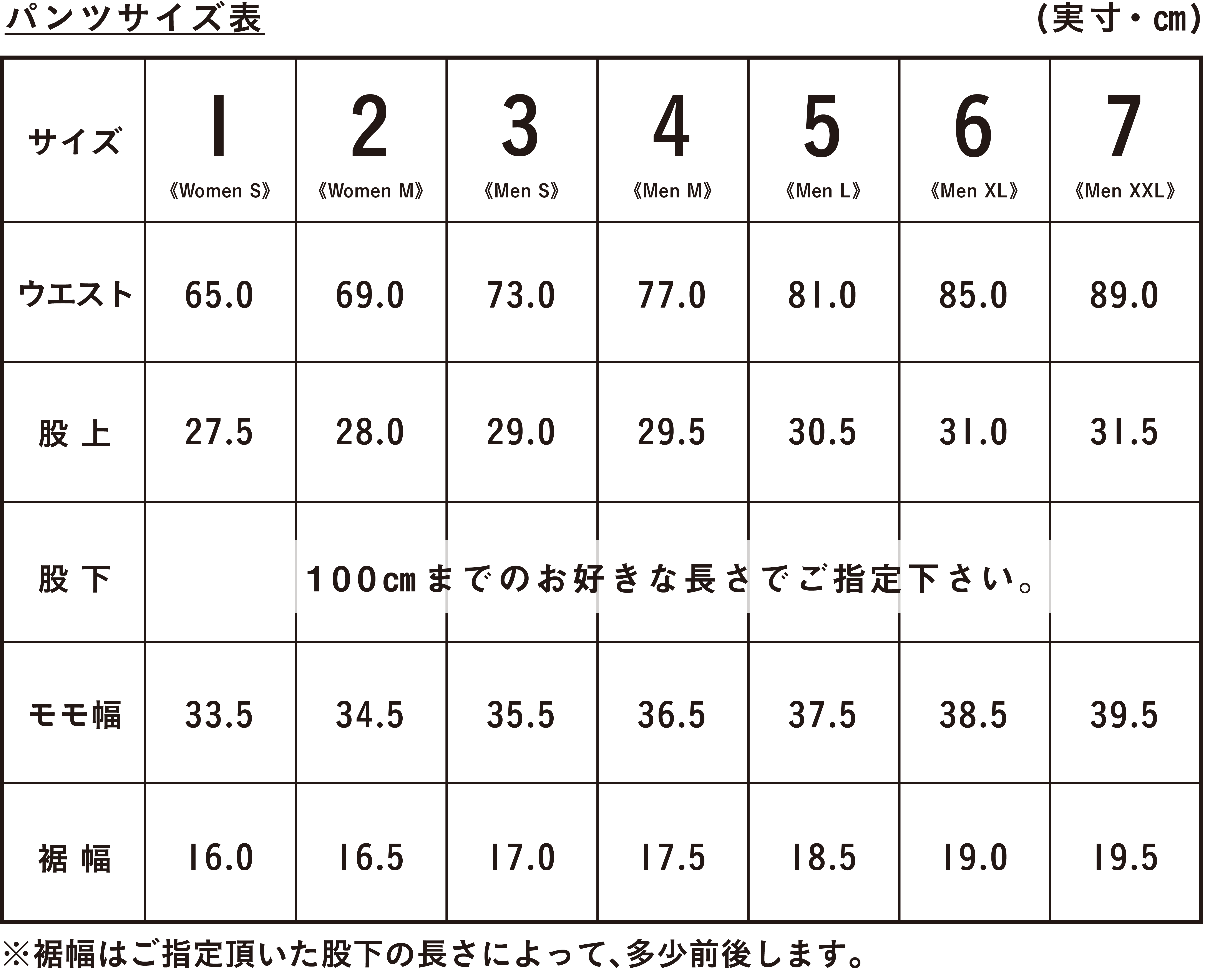 また、股下の長さをご指定できます。56㎝~100㎝まで、2㎝刻みでお好みの長さをご指定頂けます。
