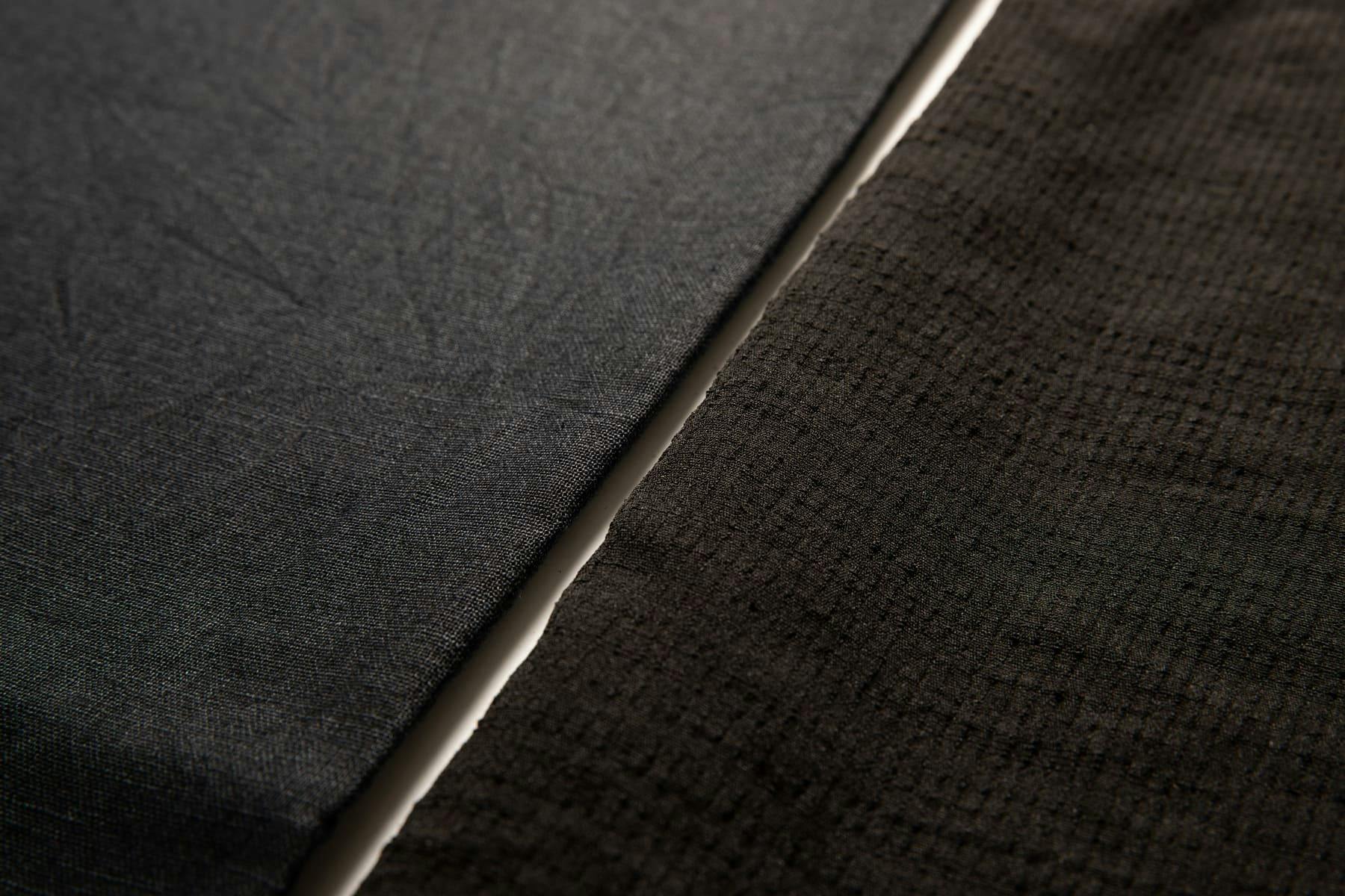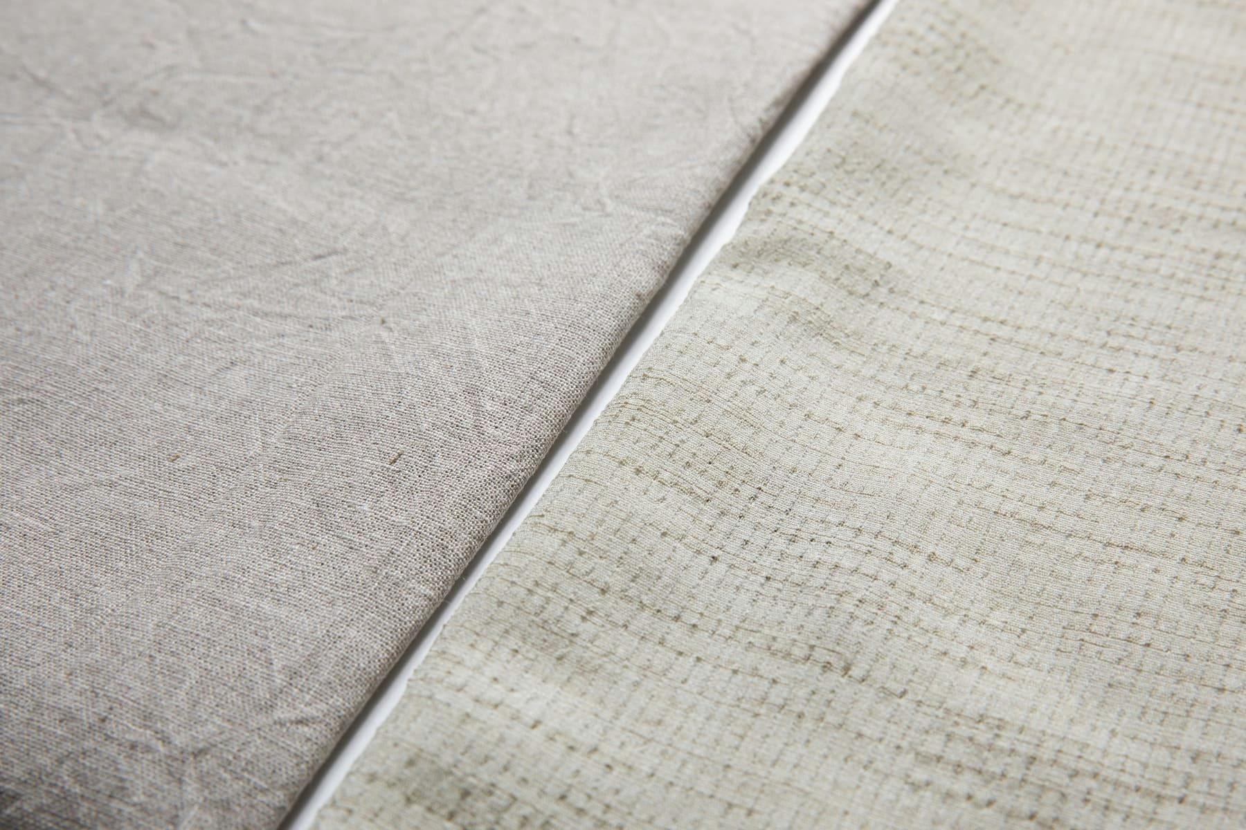 麻(リネン)100%の素材と比べても、見た目も遜色ありません。そして、生地表面が凸凹しているので、肌にベタつかず、カラっとした乾いた触感は残り続けます。