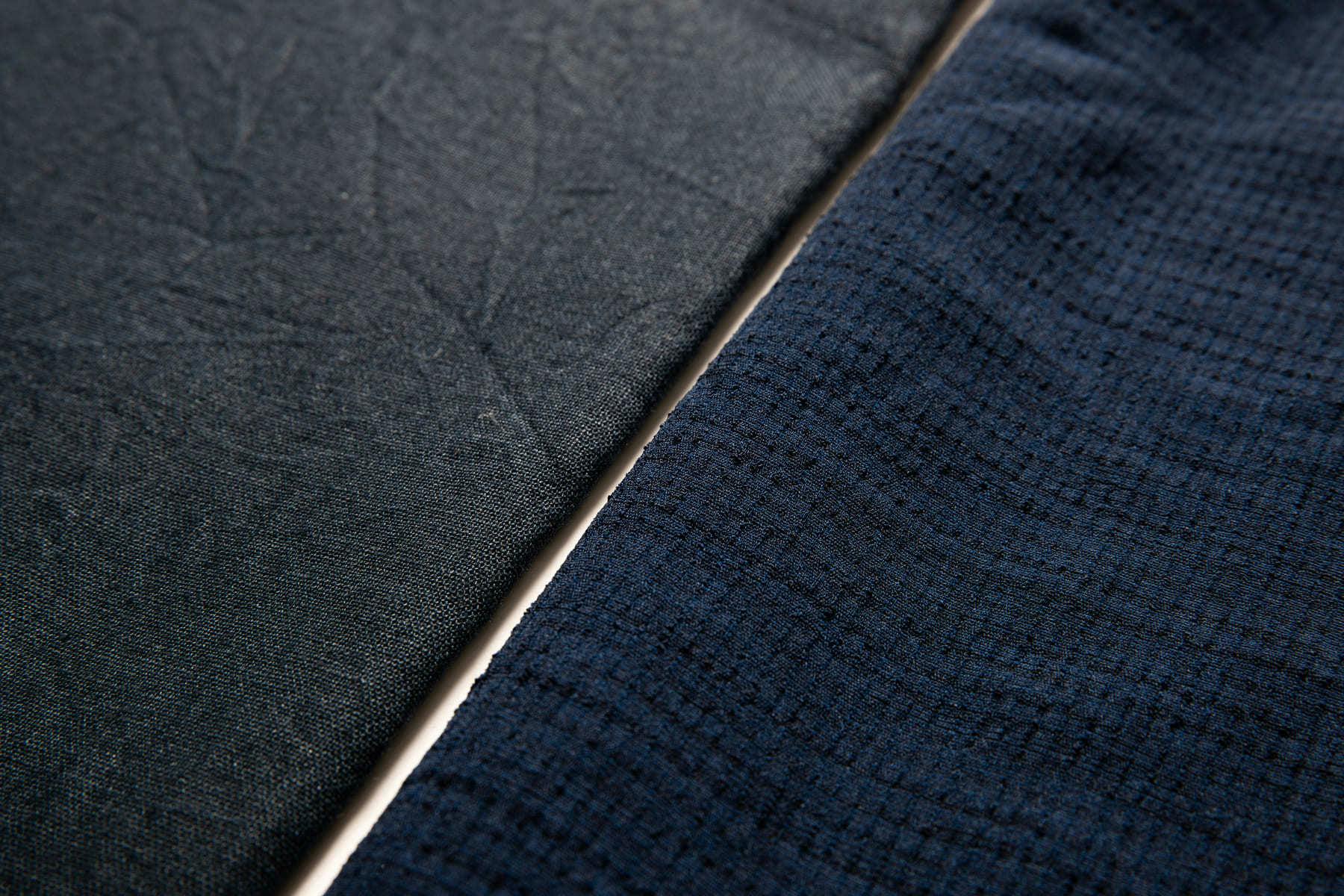 (左:従来の麻100%素材 右:新素材) ネイビー