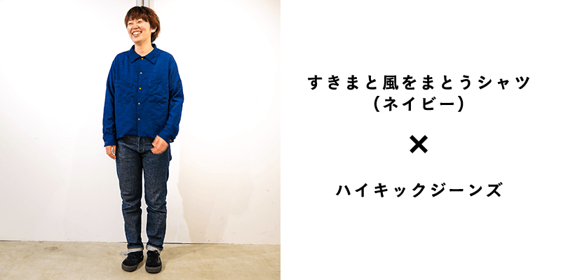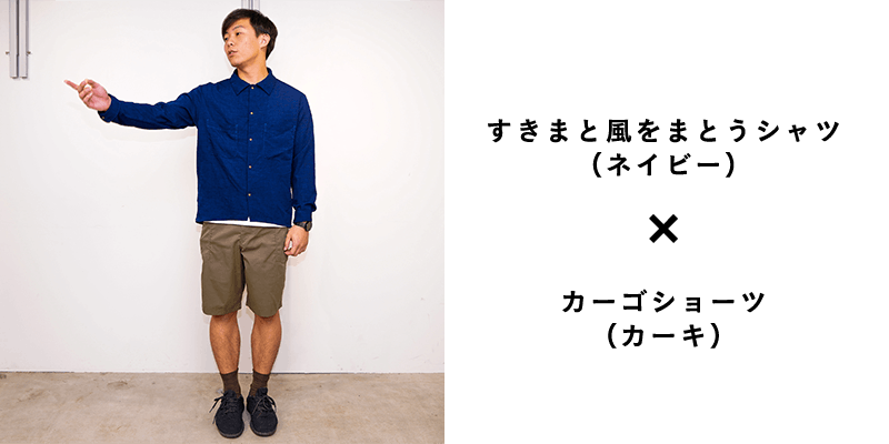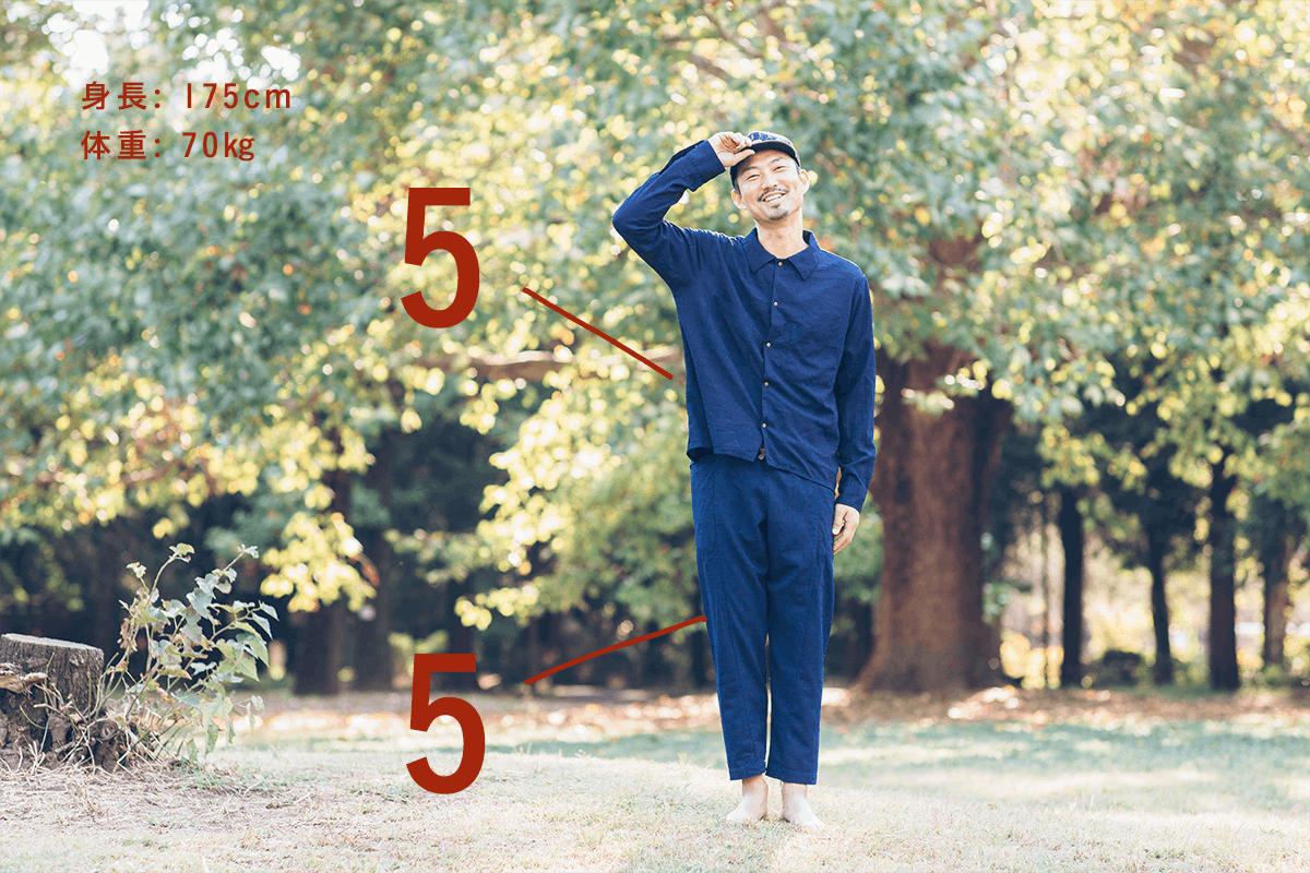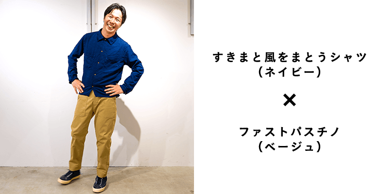 今回、新たに「麻のようなカラっとした触感」で「ストレッチ性」があって「通気性の良い」素材を開発し、その素材を使った、シャツとパンツを作りました。
