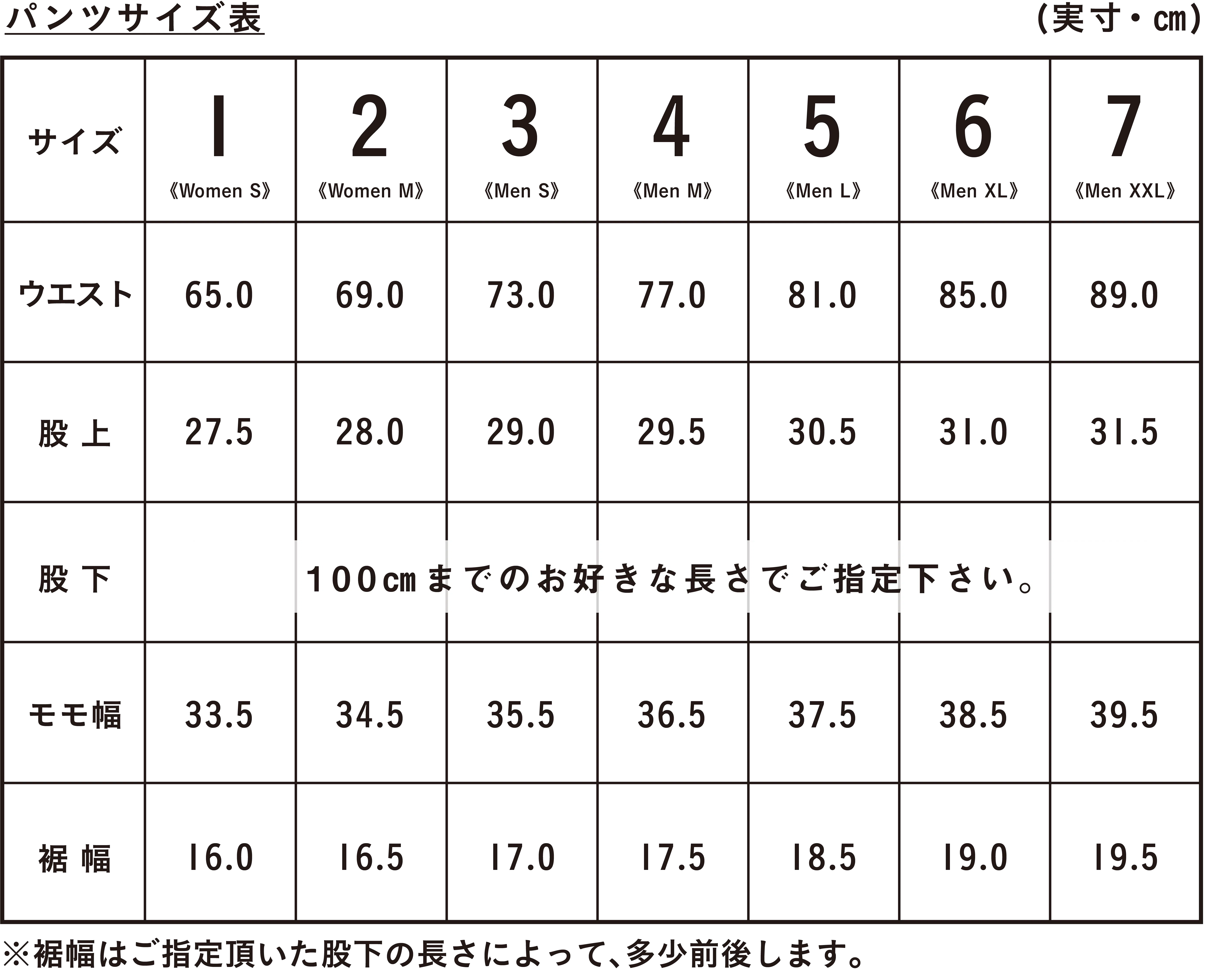 ※ご指定がない場合は、股下82cmでのお届けになります。