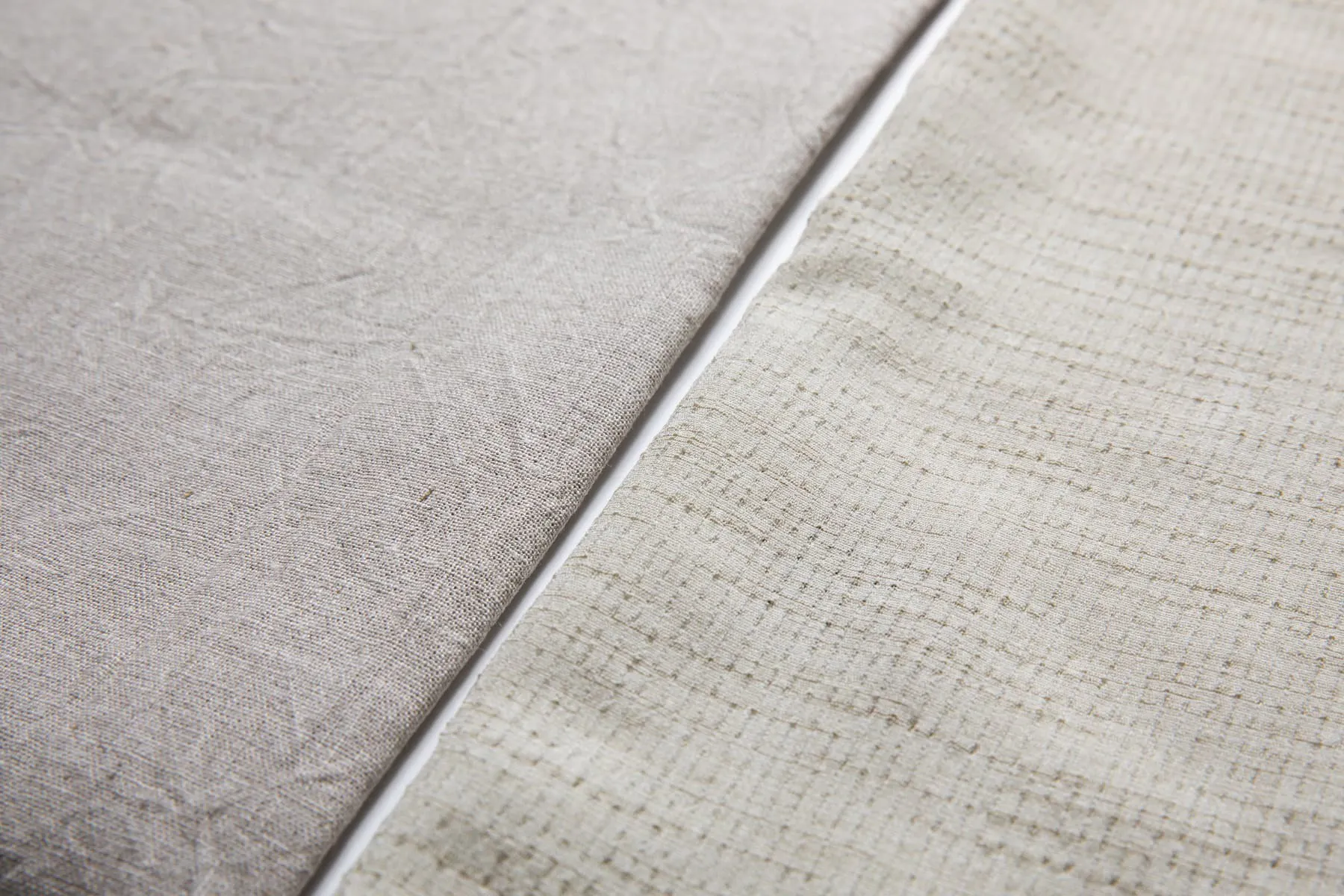 (左:従来の麻100%素材 右:新素材) キナリ