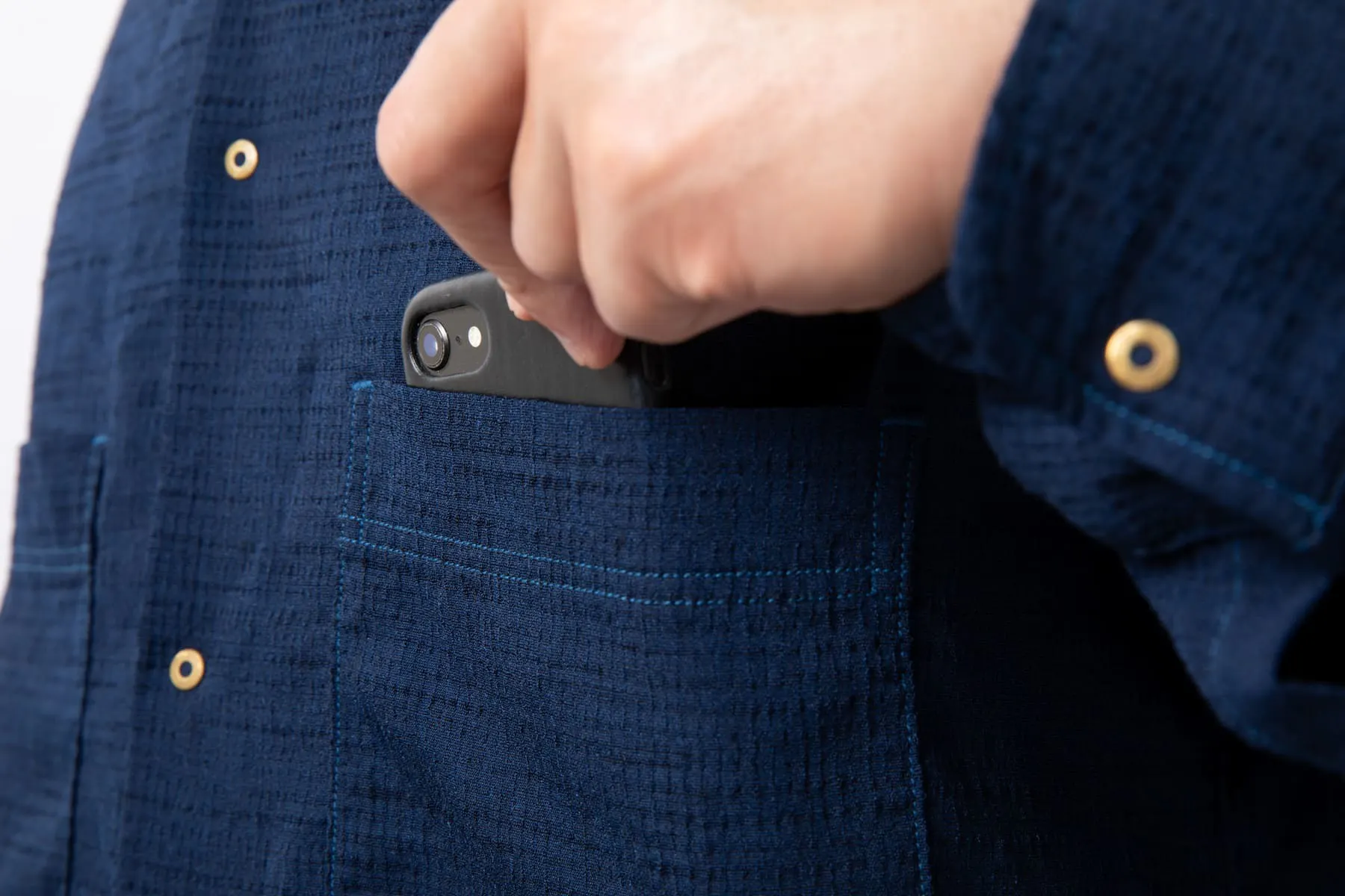 両胸のポケットはスマホがすっぽり隠れる大きさです。