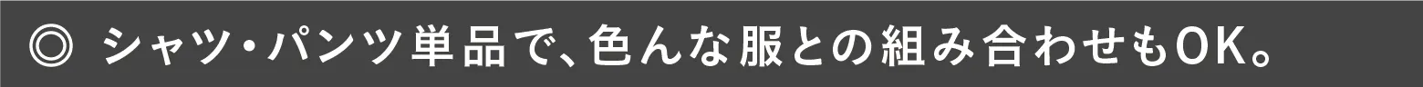 シャツ・パンツそれぞれ単品を、さまざまな服と合わせてもOKです!!
