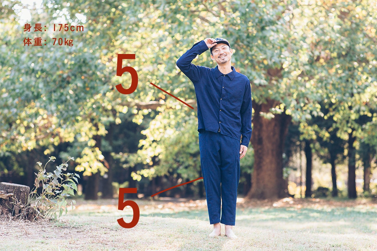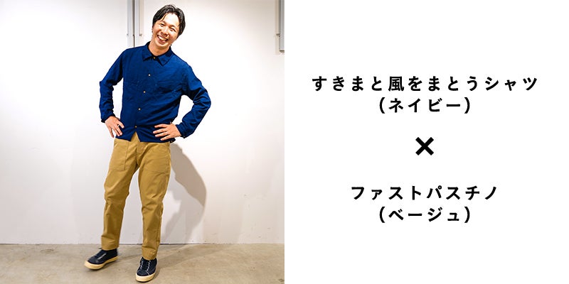 今回、新たに「麻のようなカラっとした触感」で「ストレッチ性」があって「通気性の良い」素材を開発し、その素材を使った、シャツとパンツを作りました。