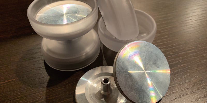 01ボディが、小ぶりなワイドモデルだったのに対して、02ボディは、直径54mm前後、有効幅は40mm以下という、攻めた設計です。これは、僕が長年愛用してきた、米国ダンカン社の「フリーハンドゼロ・フリーハンドオリジナル」を小型化し、現代版にアップデートした形状にしたかったから。ちなみに、02ボディは、Cマイナスサイズのベアリングに換装可能で、簡易バインド/引き戻し機種としても遊べます。
