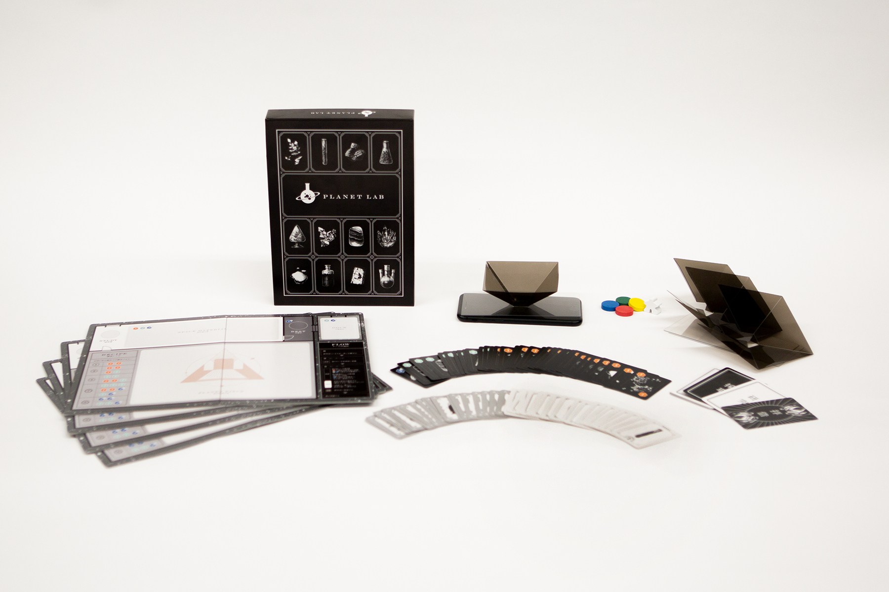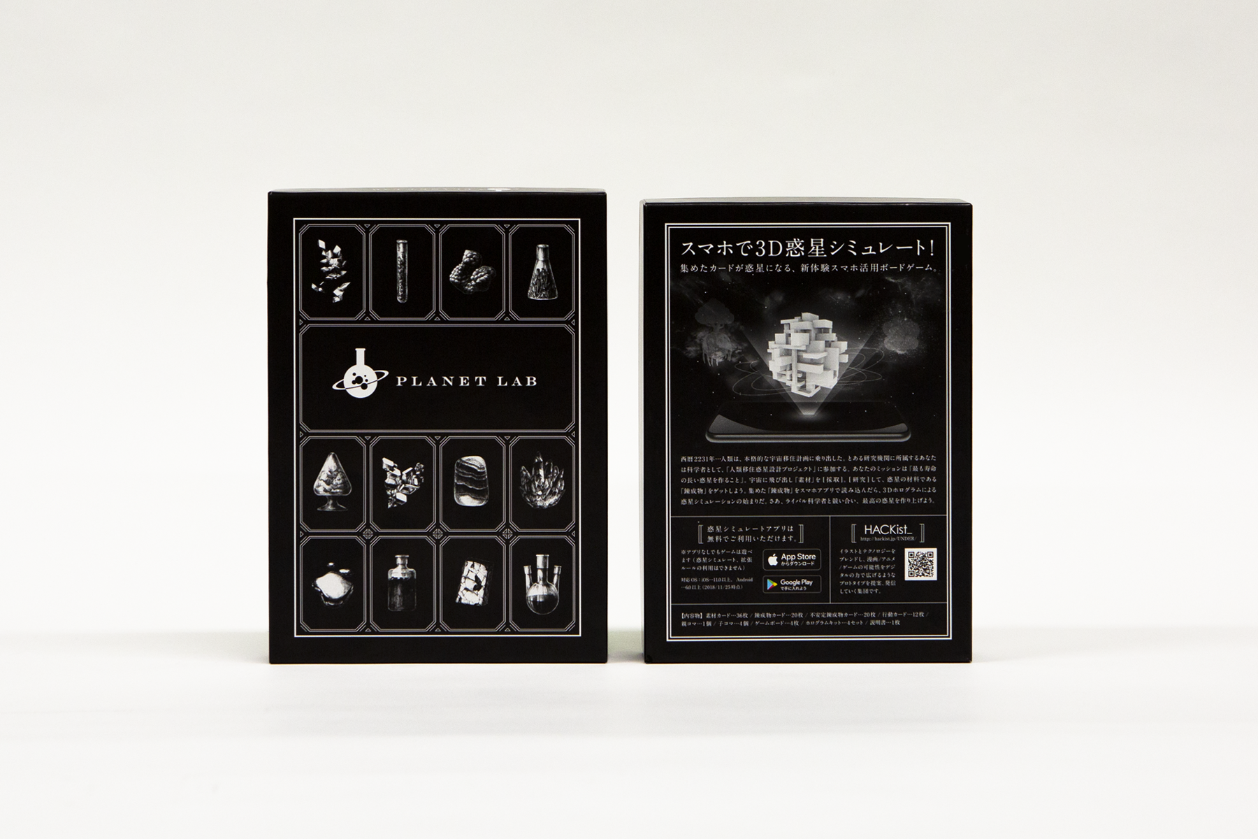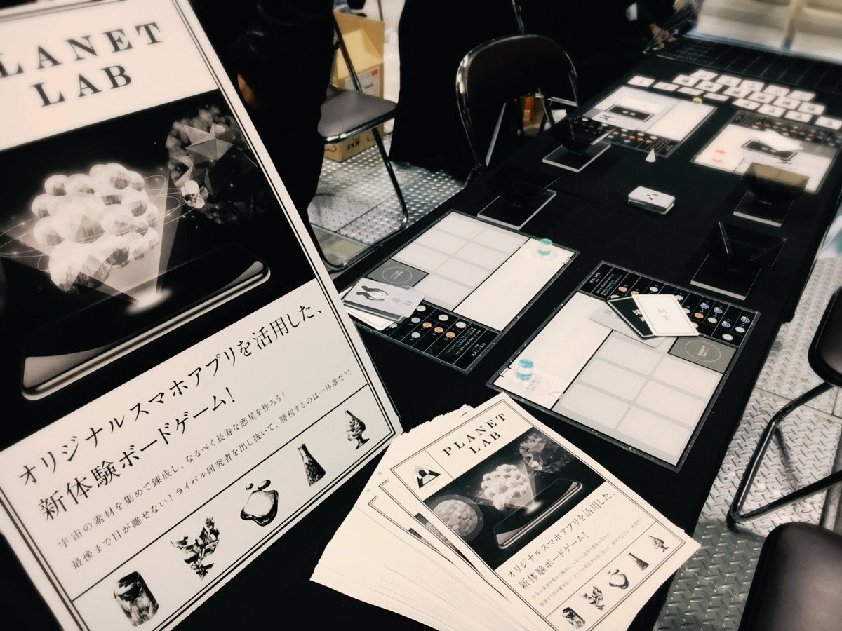 これまで「AR付き同人誌」「動く紙ポスター」などを制作してきましたが、 昨年春から「これまでにない、デジタル×ボードゲーム」として「PLANET LAB」の制作を開始。 試作版を2017秋のゲームマーケットにて試遊出展し、大好評をいただき、今年改めて個数限定で制作いたしました。