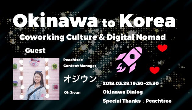 韓国にあるコワーキングスペース「Peachtree」で働くコンテンツマネージャーとSkypeトークイベントを行いました。沖縄と韓国のコワーキング文化を比較しながら、どう連携できるかトークセッションを行いました。