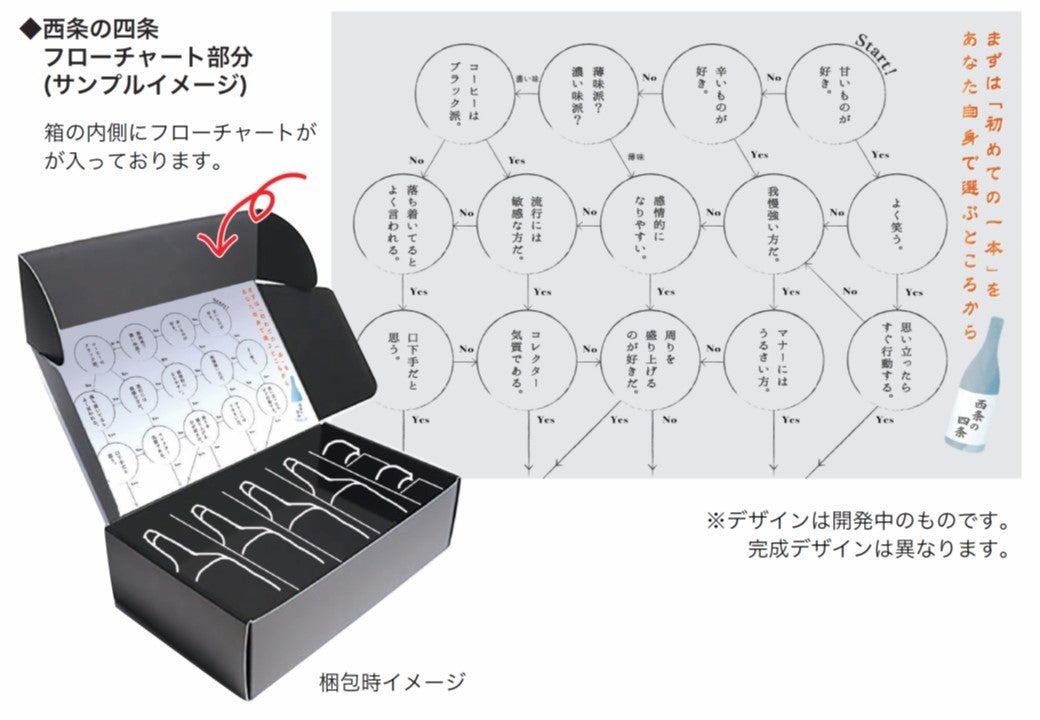 例えば、フローチャートに従って質問を辿っていくと「あなたにとって、ふさわしい1本目」を選ぶことができたり、お酒の1つひとつにコンセプトをつけて、お酒を飲みながらじっくりそのメッセージを読んでもらうことなど、いくつか仕掛けを施す予定です。