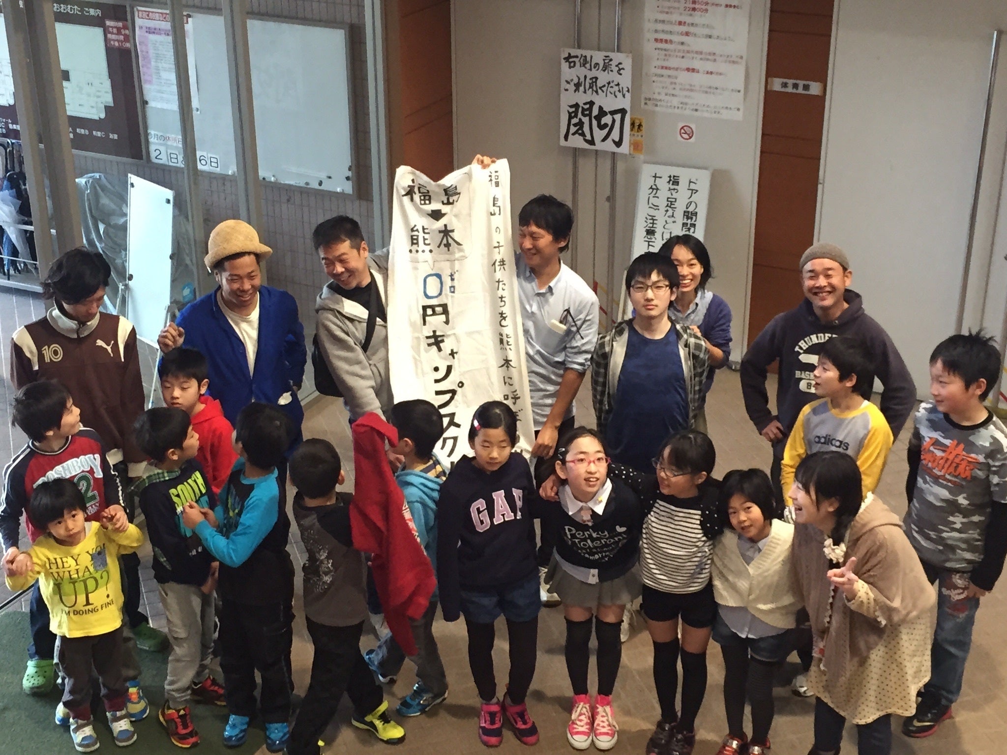 原発問題により外で思い切り遊べない福島の子供たちに熊本の自然の中で遊んでもらおうと、震災発生後の春休みより0円キャンプスクール企画を定期的に開催(年に2回)。現在も春休みと夏休みに継続して行っています。http://0camp.sunnyday.jp/