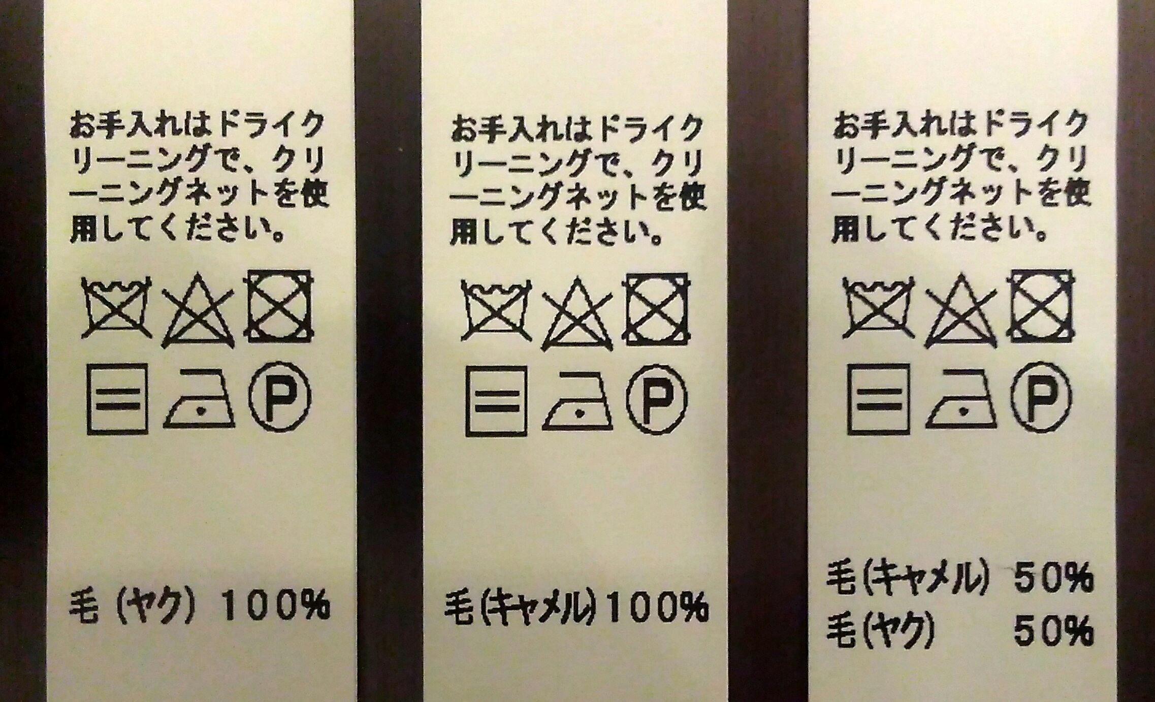素材はヤクもキャメルももちろん100%。染色するとどうしても自然の風合いを損なってしまう感じがするので、染色はせず、動物が身にまとうそのままの色合いです。どちらもとても美しく、また豪華な雰囲気に仕上がりました。