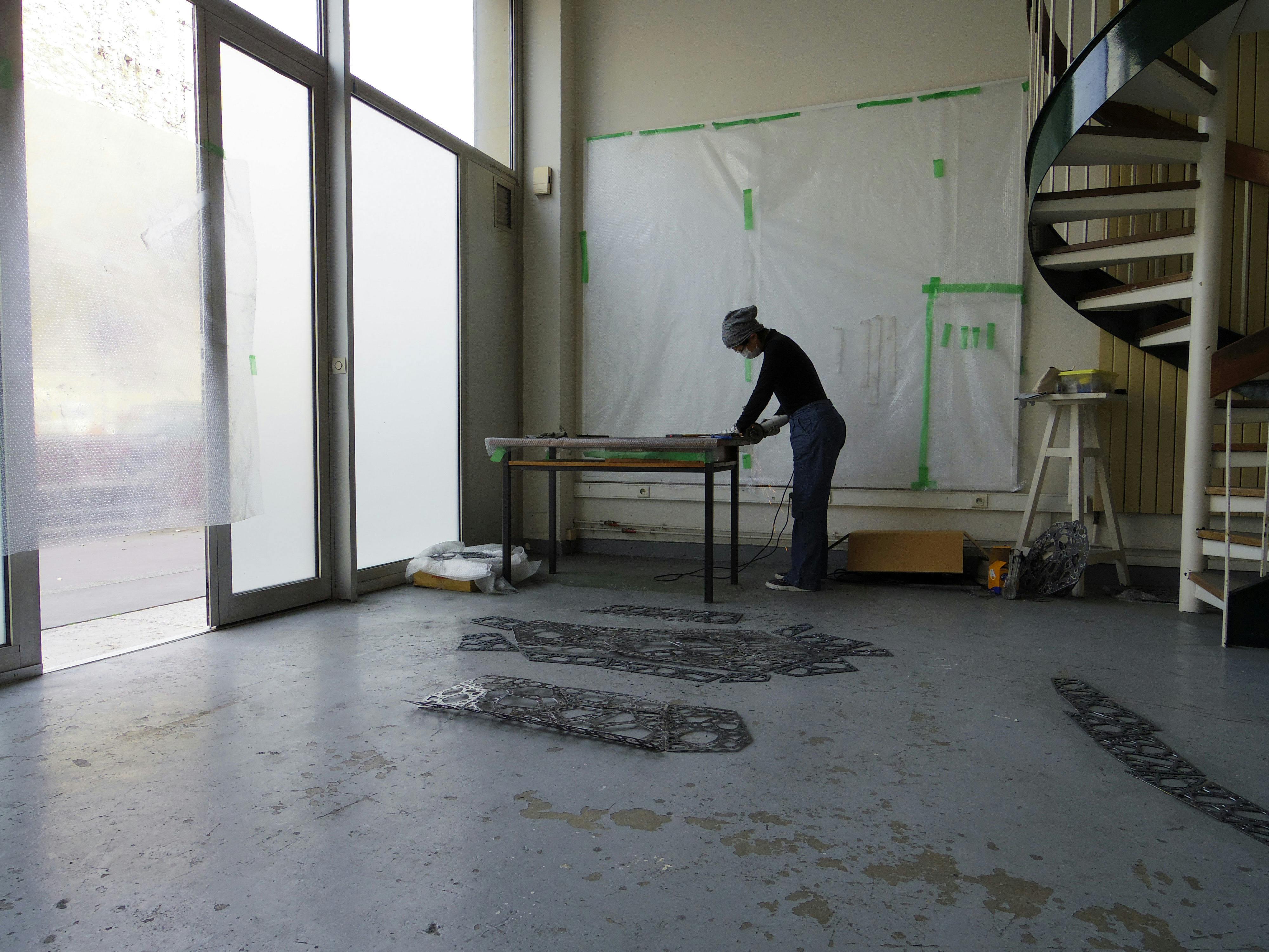 私は、金属の立体作品に魅了され、美術大学で金属加工技法を学びました。当初、私にとって、金属は単なる立体表現の素材でした。美術への思考を深める中で、金属、特に鉄は、私にとってもっと意味深い物となりました。