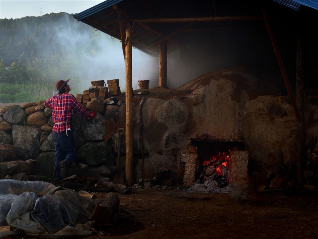 木炭は蒸し焼きにし、原木の熱分解により炭素以外の余分な成分(ガス)を全て取り除いて生産します。