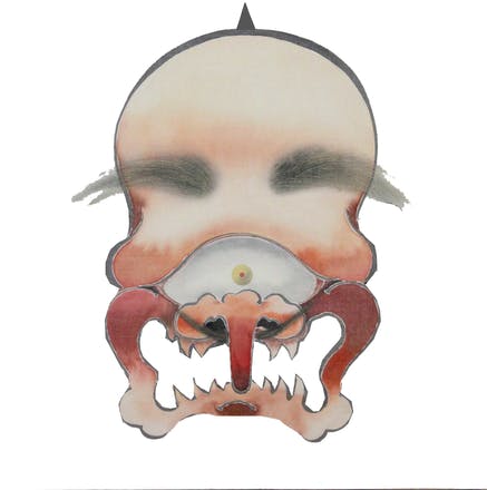 画像は「面」を元にした赤鬼のお面。口のところから目を出します。