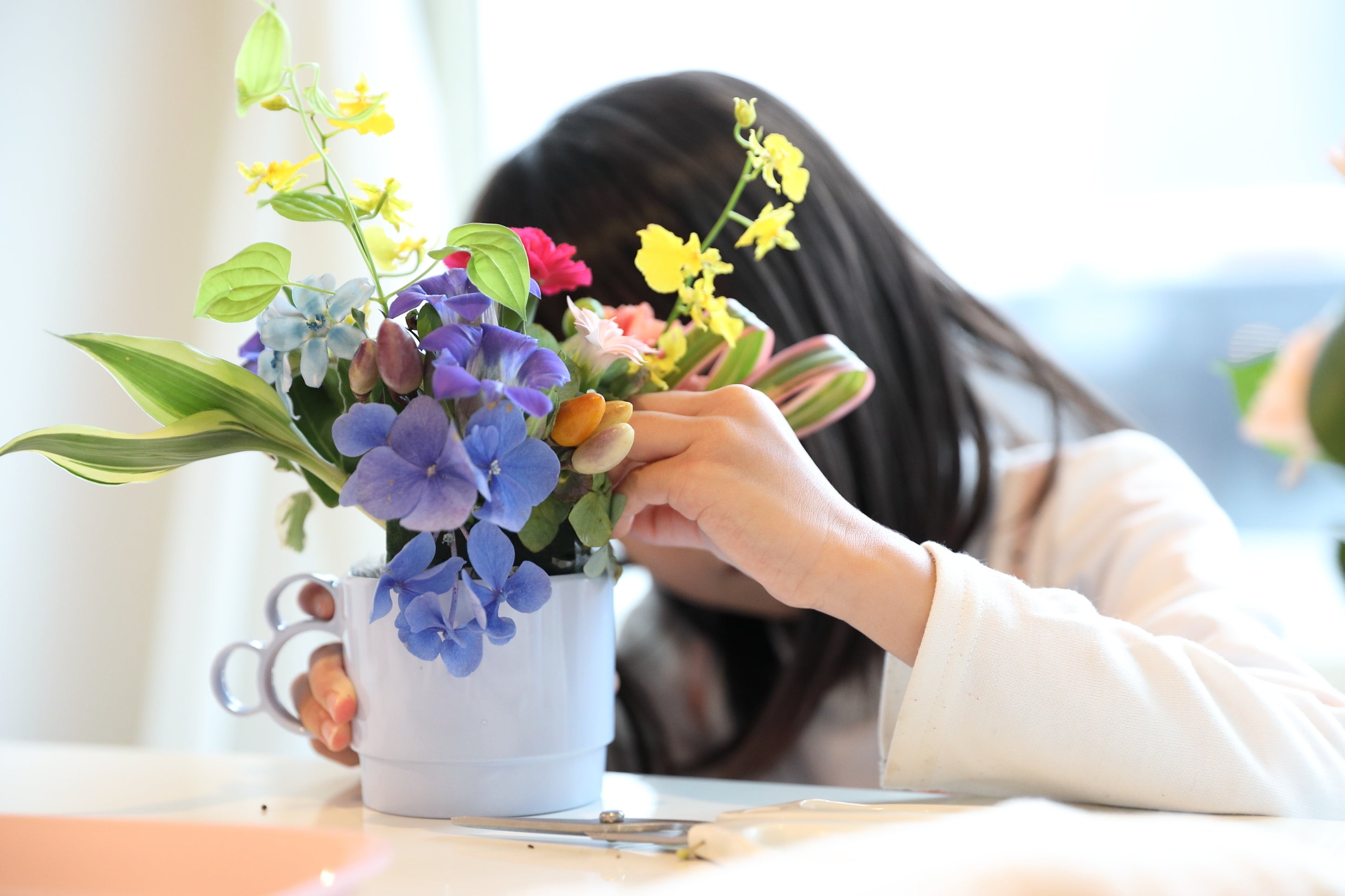 花の装飾を見ること、繊細な花と触れ合い創作することで