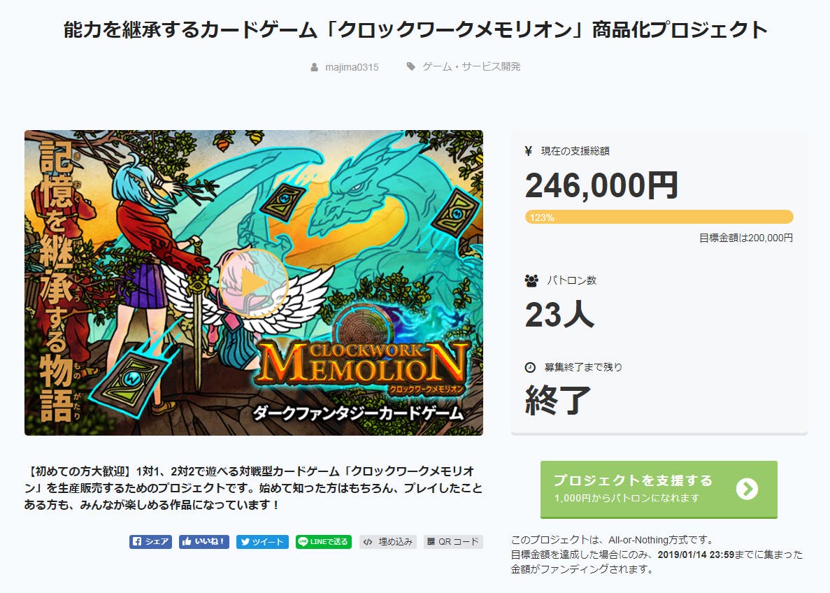 この度は、能力を継承するカードゲーム「クロックワークメモリオン」商品化プロジェクトにご支援いただき、誠にありがとうございます!!