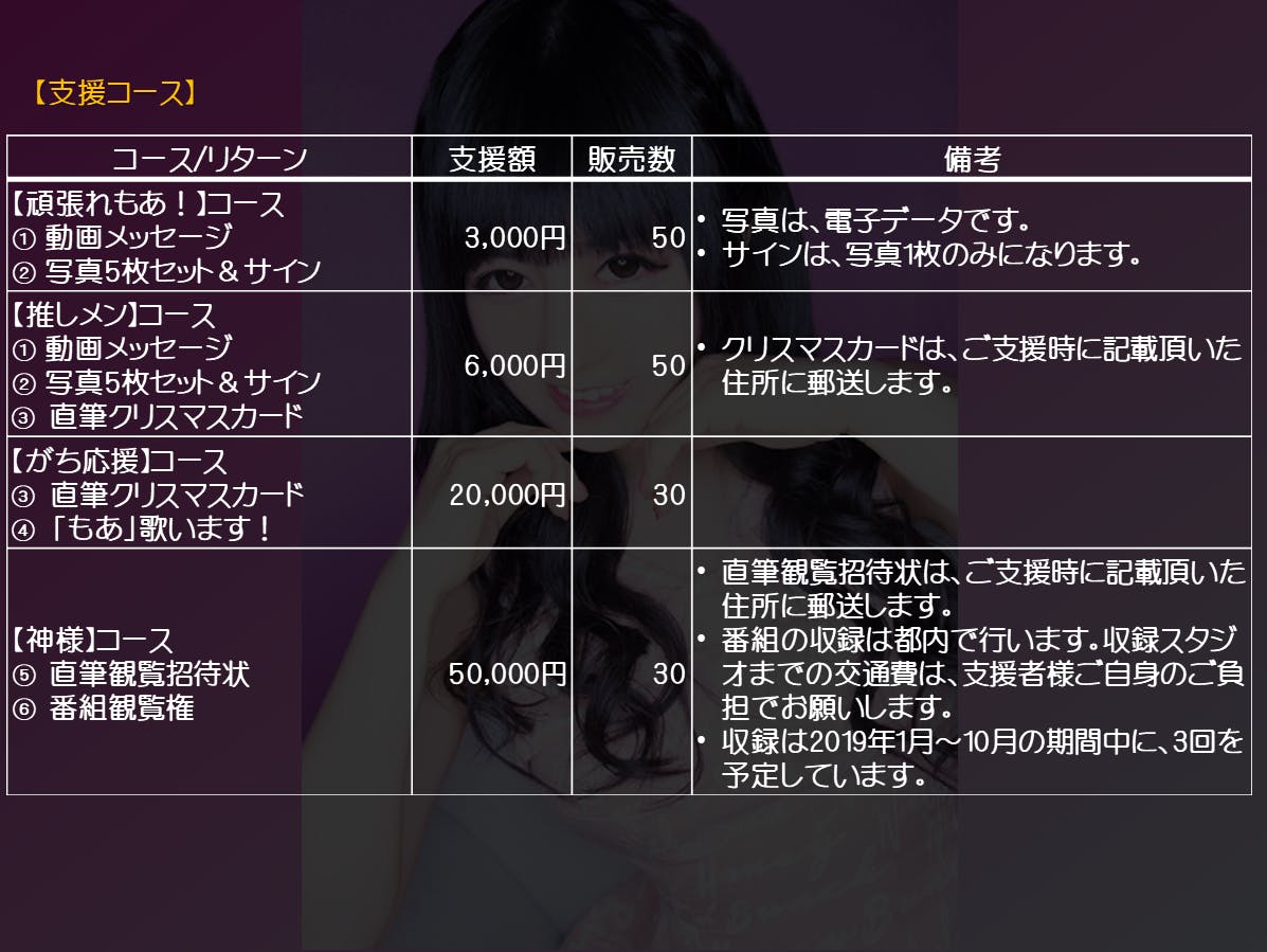 ファンの皆様からのご要望により、リターンに【もあハピ】コースと【神様Ⅱ】コースを追加しました!!