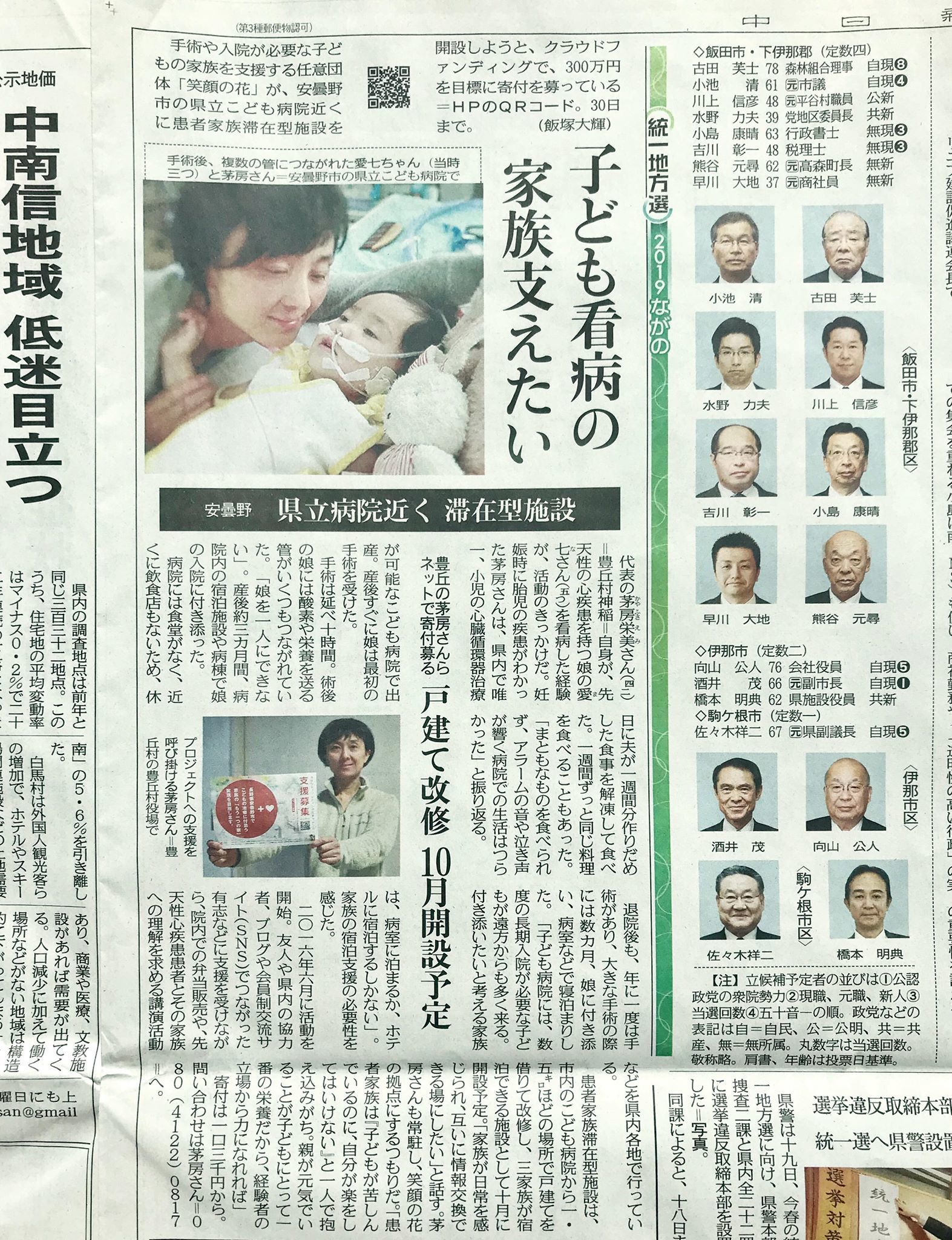 長野県立こども病院のある安曇野地の皆様と共に笑顔の花 御礼とご報告の会を開いて頂きました。とても素晴らしい未来の見える会となりました。ご縁いただきました皆様に心から感謝です。貴重なお時間をいただきありがとうございました。志し高き、お一人おひとり各分野のプロフェッショナルの皆様の力が集結これから目指す各事業ごとリーダーを決めさせていただき組織と基盤づくりを整えて行く流れを・・・・お導きいただきました。 有難うございます。 社会課題をひとつひとつ解決しながら喜びが笑顔が、倍に倍に膨らんでゆく 夢やヴィジョンを共有し愛と貢献と現実に生きる 想いを行動に互いに応援し助け合いながら其々の夢や希望を叶える素敵な未来の成長と拡大にワクワク感謝いっぱいです。 信州安曇野から日本全国〜世界に喜びと笑顔の花が咲き誇りますように。 ・・・・・・・・・・・・・・・ 本日の報告を情報共有させていただきます。事業展開等は、後ほどご報告致します。 【 法人化の流れ、理事の予定者 】 5月一般社団設立代表理事:茅房 栄美 理事:矢野 博 【 クラウドファンディングの最終金額 】 総合計:5,800,691 円 支援者647人 予算配分:CF手数料14% 540,405円 リターン:500,000円 改修費用:1,500,000円〜設備充実:1,000,000円〜家賃・敷金:895,100円/年 その他、管理・運営費に充てさせていただきます。 【 笑顔の花 活動 今後のスケジュール 】 6月:心臓病と共に生きる講演会7月:管理人移住8月:改修工事開始9月:各事業の仕組化 10月:患者家族滞在施設の開所 笑顔の花にピッタリの!美しいお花をありがとうございました。胸がいっぱいになり帰宅途中・・・感動の涙が溢れ出てきました。 生かされる「命」支え合い助け合いの循環、人とのご縁心と心の繋がり、ありがとうございます。
