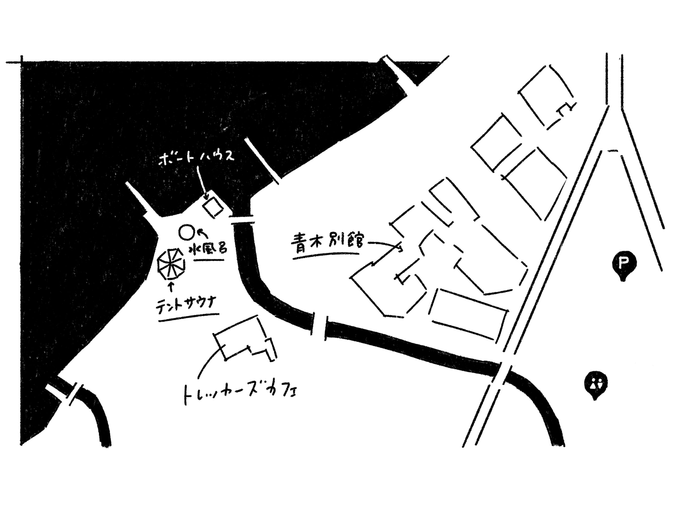 赤城山大沼湖畔には青木別館と言う旅館があります。今回はこの青木別館さんが待機場所となり私達の安全を確保してくださいます。青木別館の食堂を待機場所として、部屋を更衣室としてお借りしてサウナの準備に入ります。そこから大沼湖畔までの少しの距離ですがサウナに入るメンバーは車で移動して湖畔のボートハウスという待機場所に移動します。そこで上着を脱いで、いざ湖畔のテントサウナにINという流れになります。仮設のプールで水風呂(と言うよりも氷風呂になるかもしれませんが)も近くに設置します。