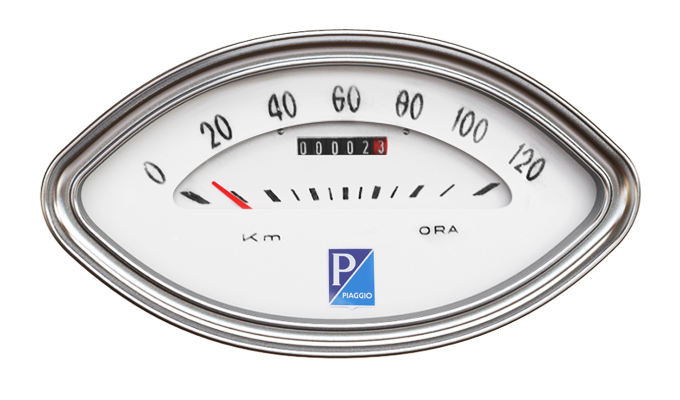 文字盤レイアウトは、ビンテージスクーターの計器のオマージュとなっています。日付窓は、ビンテージスクーターの走行距離計をオマージュしているだけでなく、文字盤の円部分になじむデザインに仕上げています。また、文字盤の下部には24時間表示盤がついています。ケースの形状と針部分は、ビンテージスクーターのスピードメーターをオマージュしています。針は、20世紀半ばのビンテージスクーターなどのダッシュボードによく見られた赤色を使用しています。