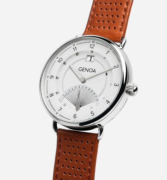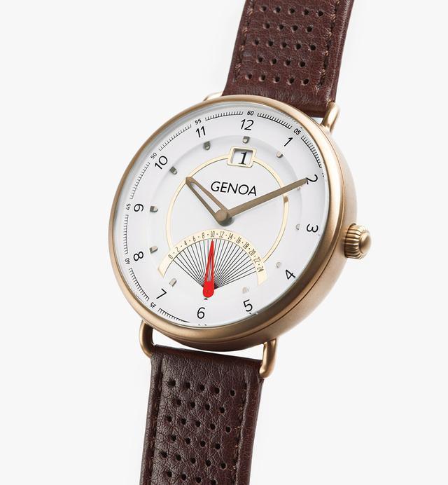 Genoaシリーズは、あらゆる面でより優れた腕時計となっています。ムーブメントは、高い信頼性、正確性で有名なMiyota GP00 新型multi-functional/retrogradeを採用しました。ケースと文字盤のパーツには、高品質で丈夫なコーティングを施しています。何層も重ね合わせたコーティングで、ビンテージスクーターが持つ、熟練の職人の精巧な手仕事のような雰囲気を感じることができます。