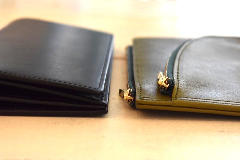 ※薄型の長財布と比べても大きくボリュームを抑えられている事がわかります(弊社製品との比較)