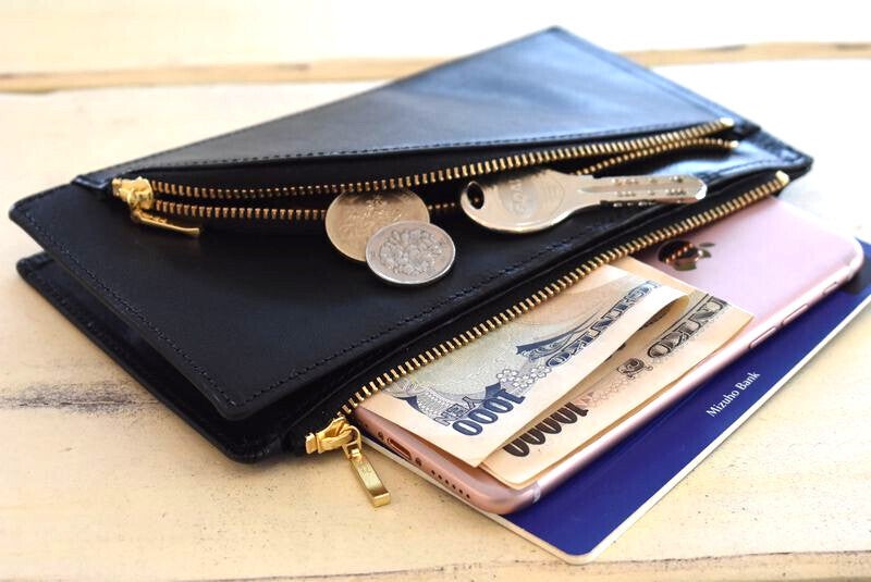 小さく・コンパクトなキャッシュレス用財布は利便性良いのですが、収納性でどこか物足りない事も。長財布をベースにした【ひとつにまとめるパース】なら多くのカードをすっきりと【パスポート・通帳・スマホ・お札などまとめる事が可能】またカード社会の今に合わせ超薄型。