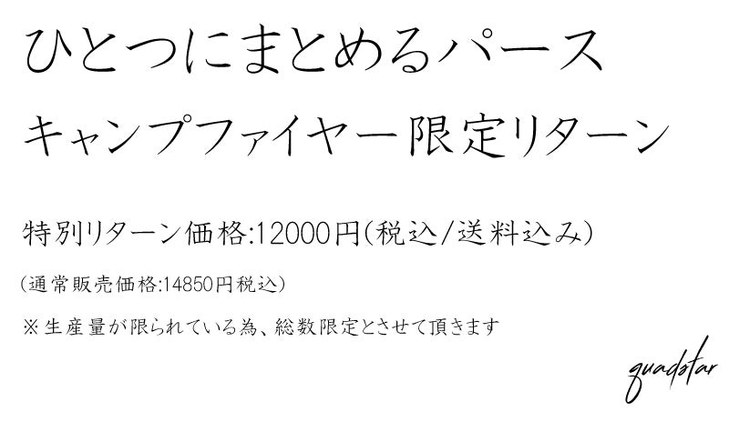 プロジェクトをご覧頂きまして誠にありがとうございました。ひとつにまとめるパースはカード社会において【如何にスマートに多くのカードを携帯できるか】に挑みデザイン致しました。もちろん多様性という財布の進化にも目を向け完成した新しいタイプの長財布です。財布は比較的歴史も浅くクレジットカードの普及と共に様々進化を重ねてきたアイテムです。今では現金よりも電子マネーやクレジットカードを重要視していく為、トータル収納できるアイテムでなければならないとクワッドスターでは考えております、皆様が自由に使い込ごちを楽しめる、そのような新しいアイテムを今後もリリースして参りたいと思います。