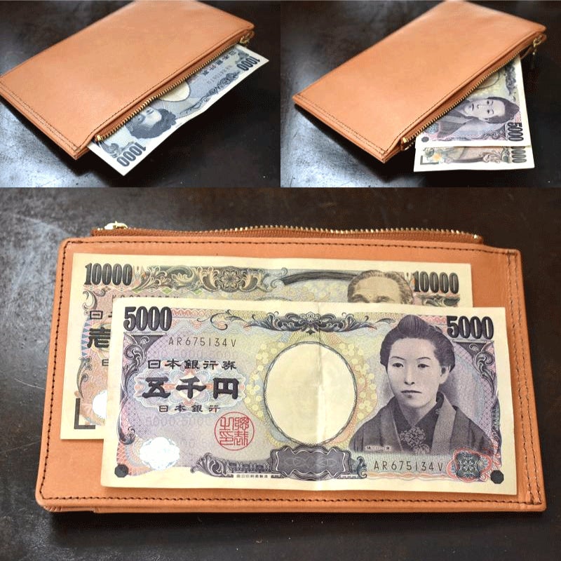 (1000円札は折らなくても収納可能。5000円・10000円札は入り口で斜めに入れ、中に入れば折らずに収納可能)