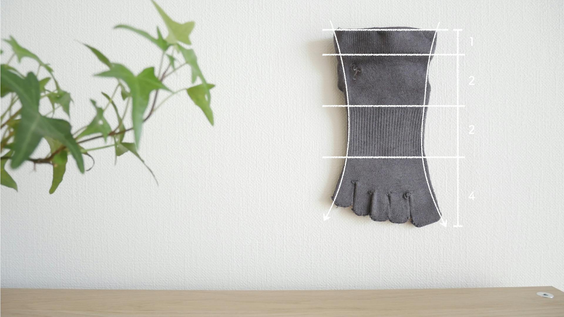もっと簡単に足指を広げる方法はないか。そんな想いで理想的な5本指靴下の開発をスタートさせました。10年の歳月をかけて設計図を作成。幾度となく試作品を繰り返しながら出来上がったものが、足指を広げて足を安定させる「形状記憶の靴下」でした。 これまでの従来品の五本指靴下とは違い、はだし感覚で足から足指までピッタリフィットします。製作までの道のりは非常に長くかかりました。どんなに形が崩れても洗濯をすればもと通り。いつも変わらないフィット感を感じて欲しいです。