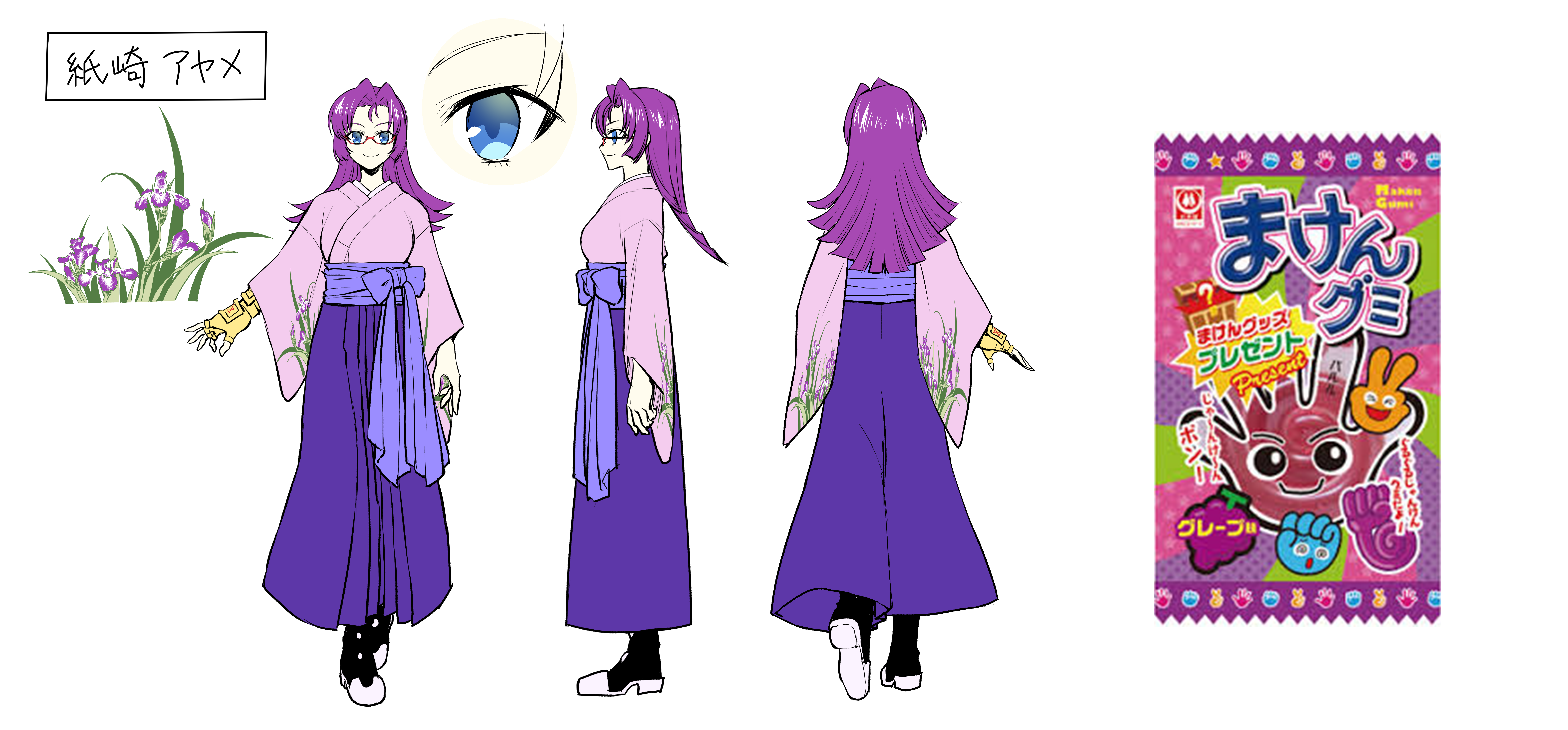 ▽グレープ味でパー担当の「紙崎アヤメ」は紫色袴でロング