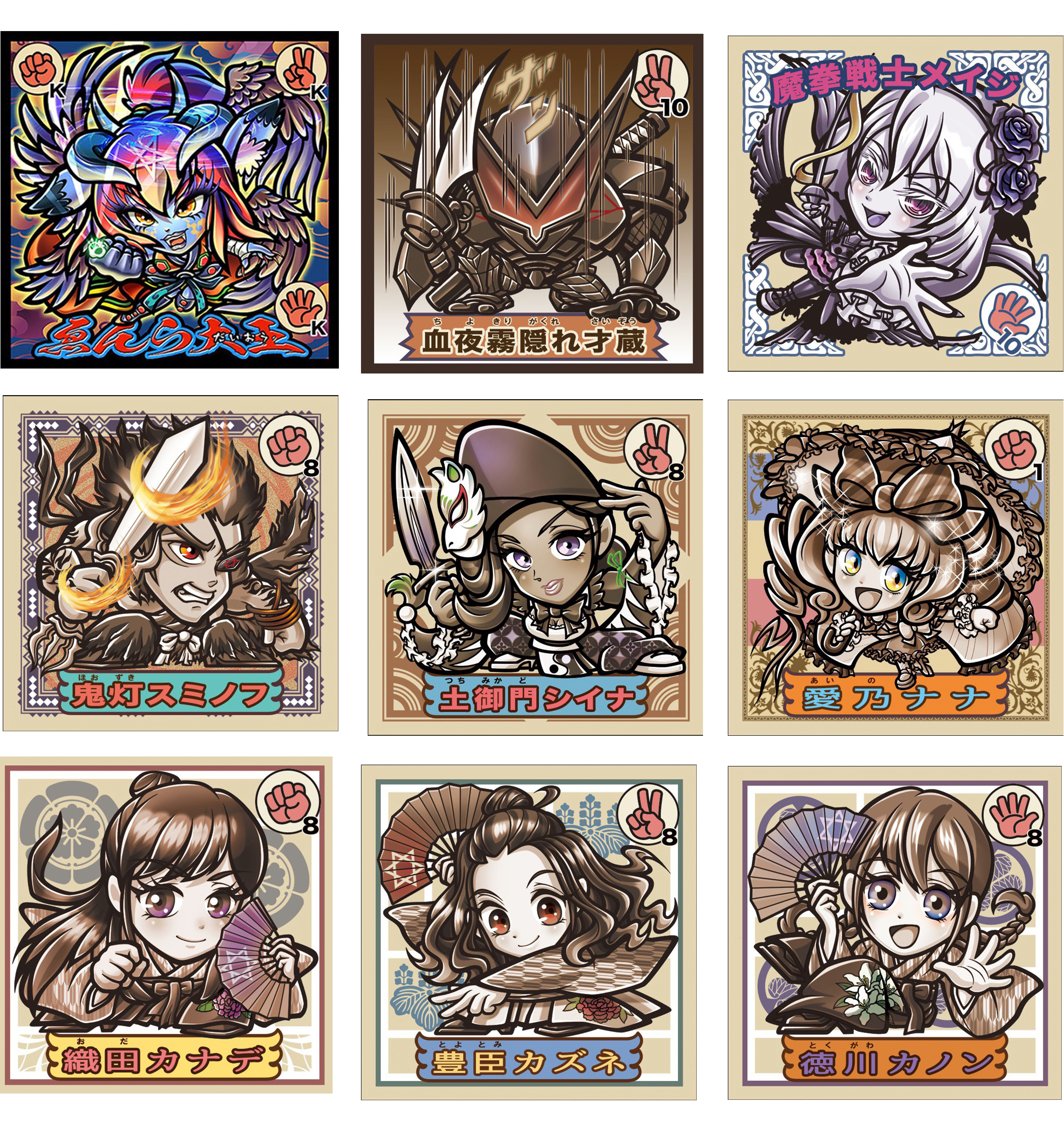 第1弾の新キャラクターを大正浪漫(セピア)バージョンで8体 + 完全オリジナルのシークレットレア枠として「ゑんら大王」!