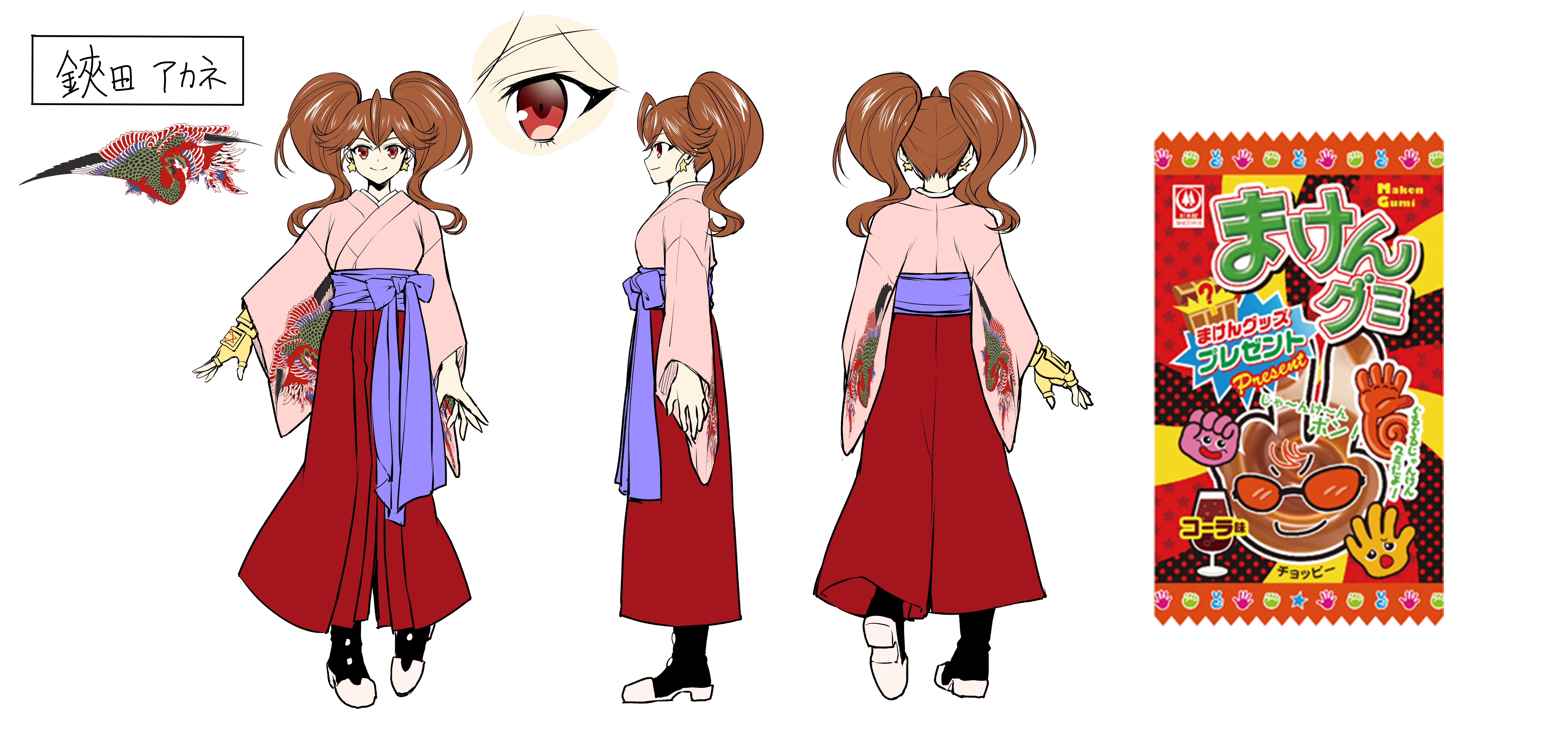 ▽コーラ味でチョキ担当の「鋏田アカネ」は褐色袴でポニーテール