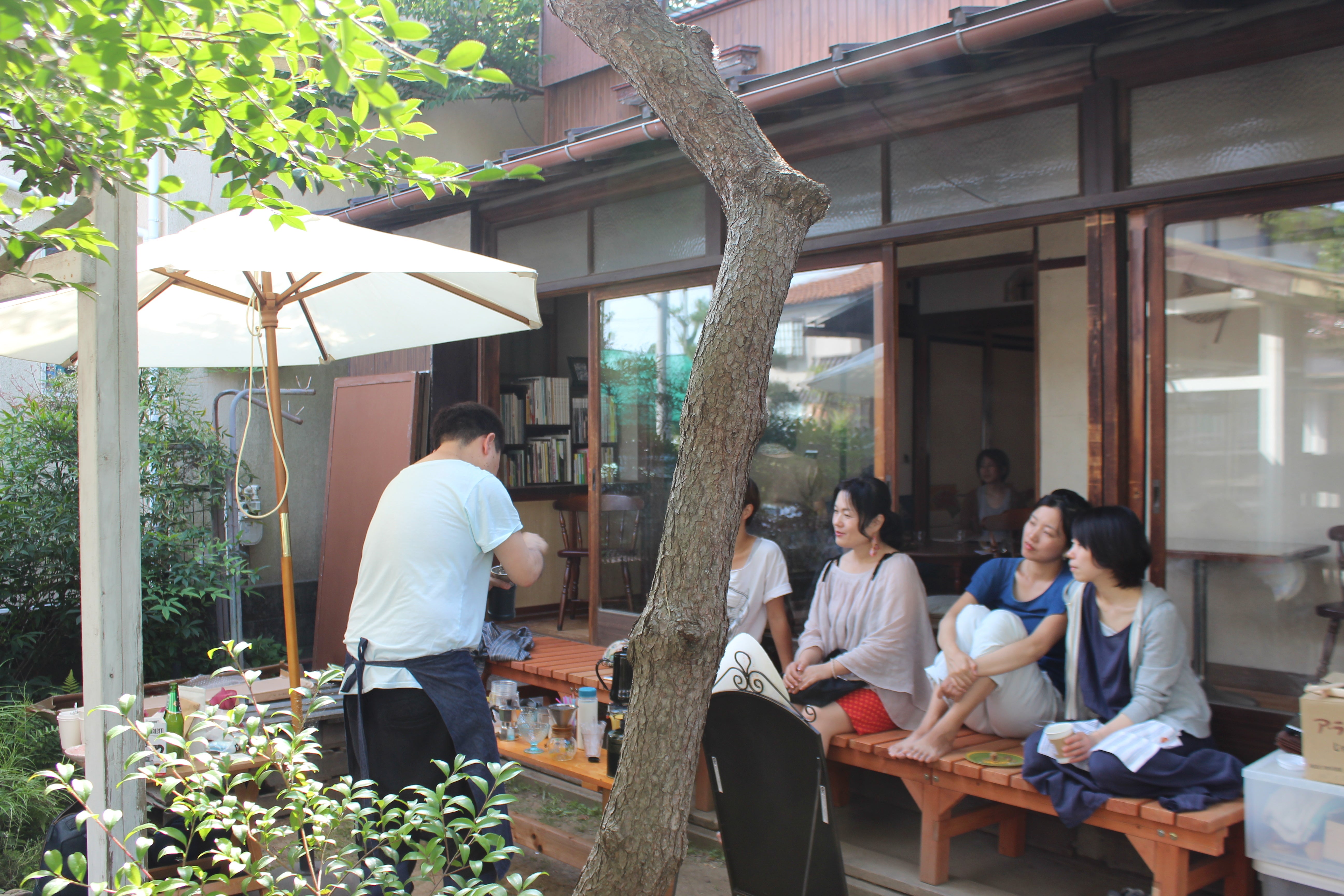 縁側に出張コーヒー屋さんが来ることも。