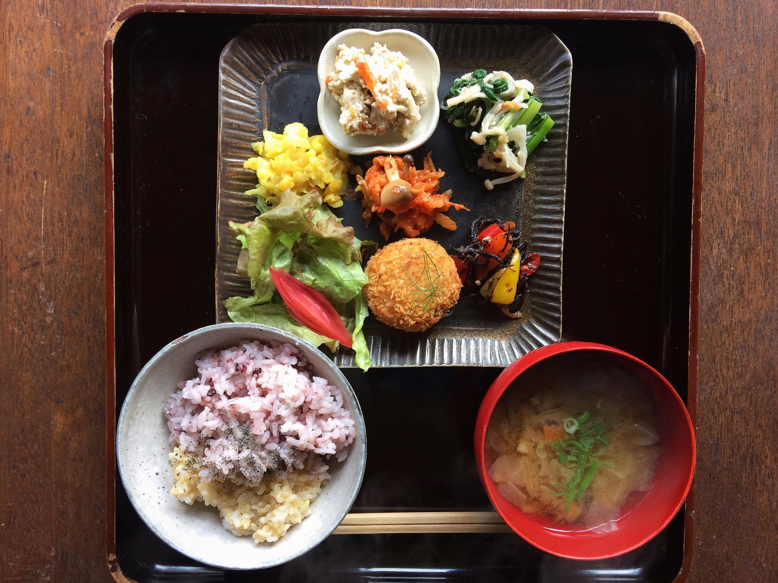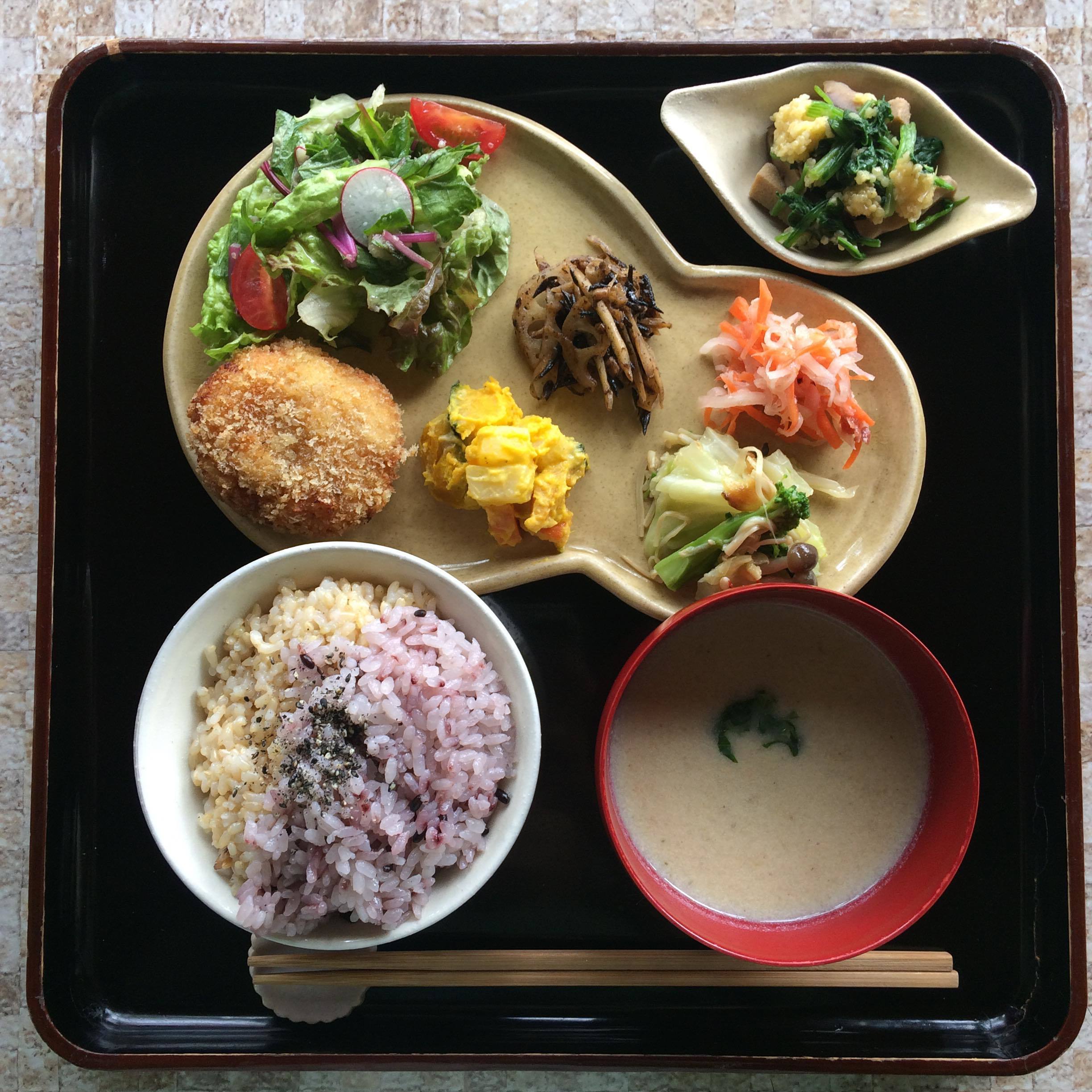 季節の野菜と果物、豆や米粉、おからや菜種油、発酵食品やスパイスなど、