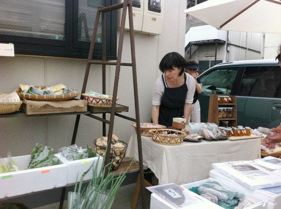 2011年の震災をきっかけに、 自宅のガレージにパラソルを立て、地元農家さんの野菜や天然酵母のパンなどを並べたマルシェからスタートしました。