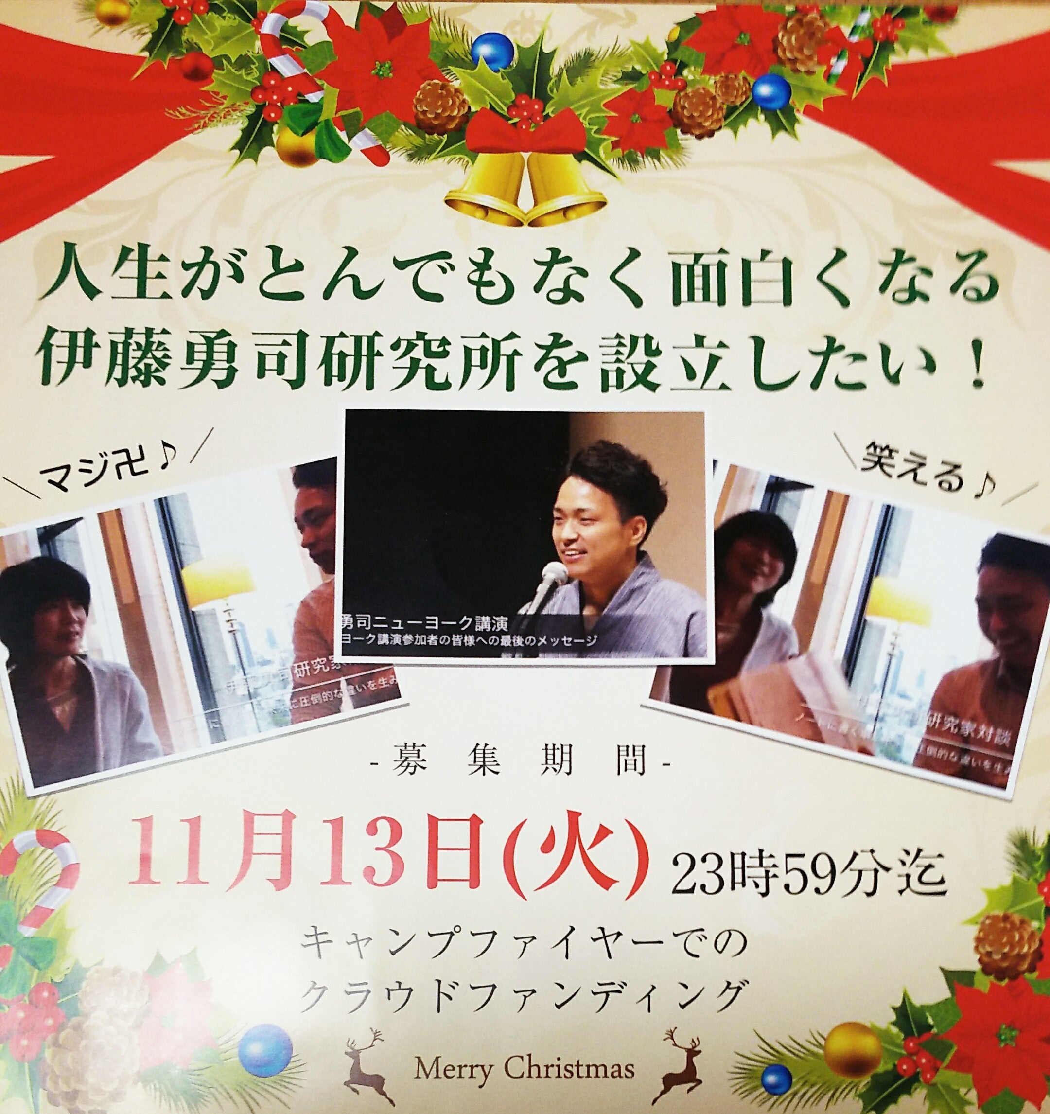 プロジェクトを応援下さったみなさまへもともとリターンでご用意していたイベントを形を変えて<伊藤勇司さんをお招きしてのおもしろ会>in東京【逆転の発想。伊藤勇司さんに聞くバク転から得る人生の極意+ニューヨーク行きの真意を探る】=プロジェクトは成立しなかったけど研究所はこれからおもしろくなるよ=として企画しております。クラウドファンディング中リターンでお申込み下さっていた方に先にご案内しておりましたがあと1名さま、ご参加頂けます。ご希望の方は下記記事の申し込みフォームからお申込み下さい。<伊藤勇司さんをお招きしてのおもしろ会>in東京https://watashi-suki-organize.amebaownd.com/posts/538708812月1日に大阪で開催しました時の様子はこちらの記事にのせております。「研究家活動報告。伊藤勇司さんをお招きしての会はおもしろいけど深い。深いけどおもしろい。」https://ameblo.jp/watashi-suki-organize/entry-12423072897.htmlご参考下さいませ。