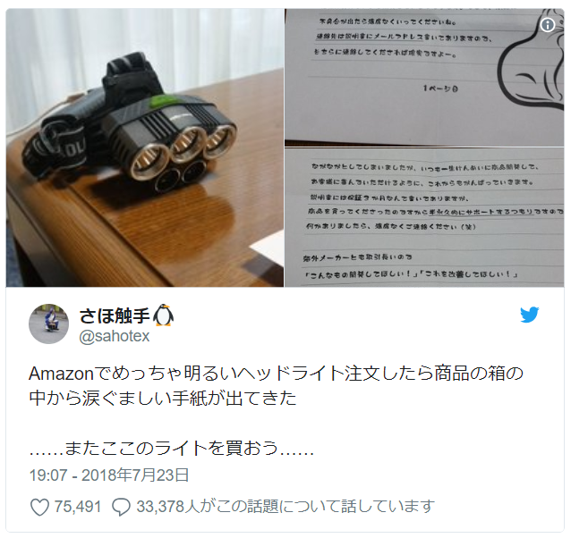 さほ触手さんがヘッドライトを使ったときの投稿がこちら。